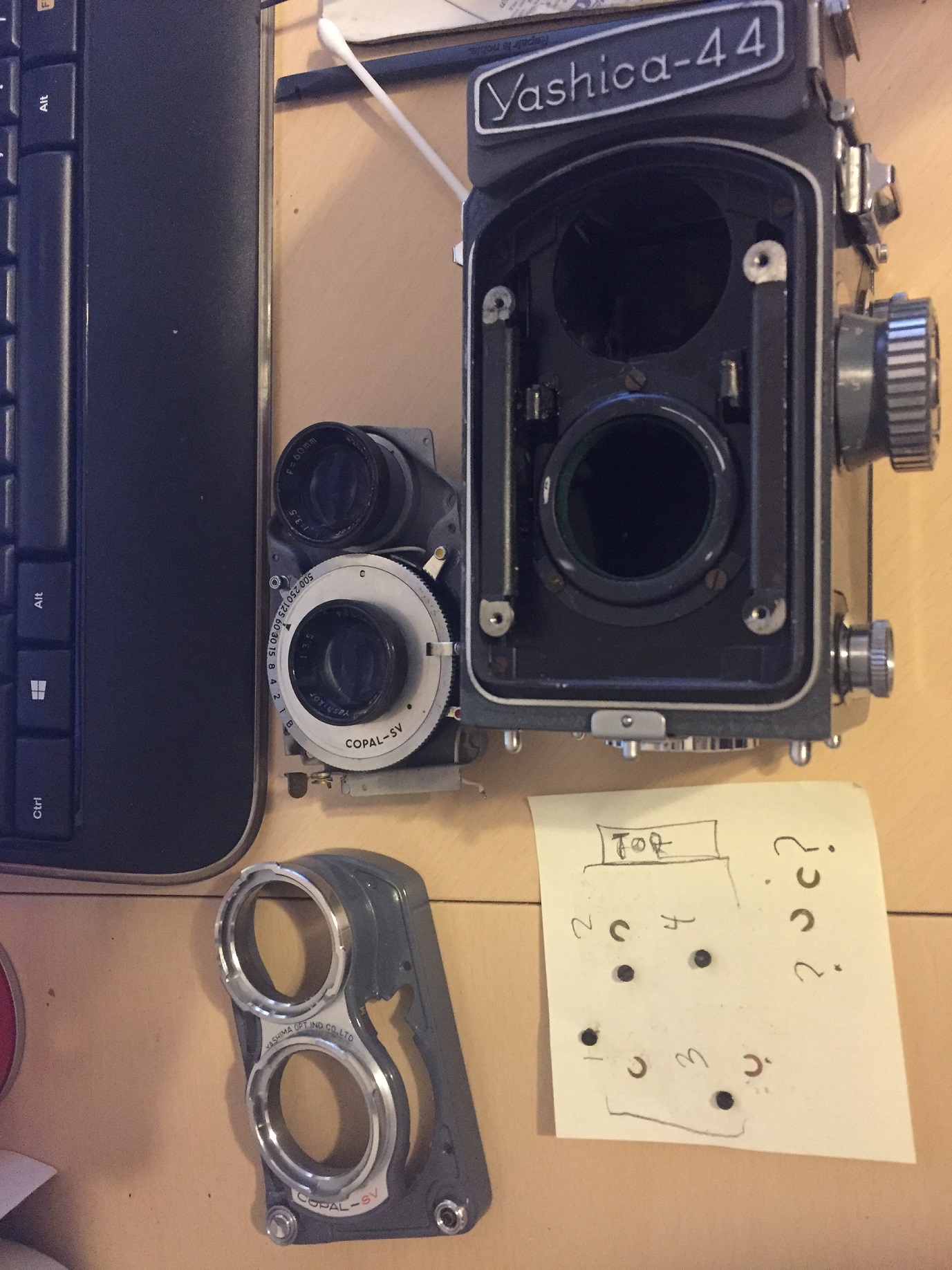 I have a Yashica 44 127 TLR that came to me with a very loose lens board. The leather was petrified to the point I had to chip it off and the mechanical action of this removal caused the lens board screws to almost totally back out and two half moon brass shims to fall out the bottom of the camera and into my lap.