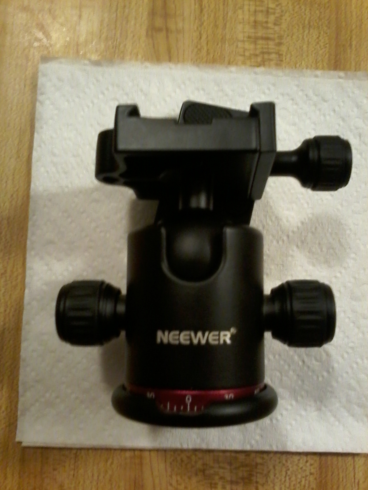 Selling the original ball head that came with my Neewer tripod, upgraded to a different kind of ballhead. Good condition, has some light marks. Red base version. Does *not* have the 1/4"-20 adapter to fit on tripods with 1/4"-20 screws.