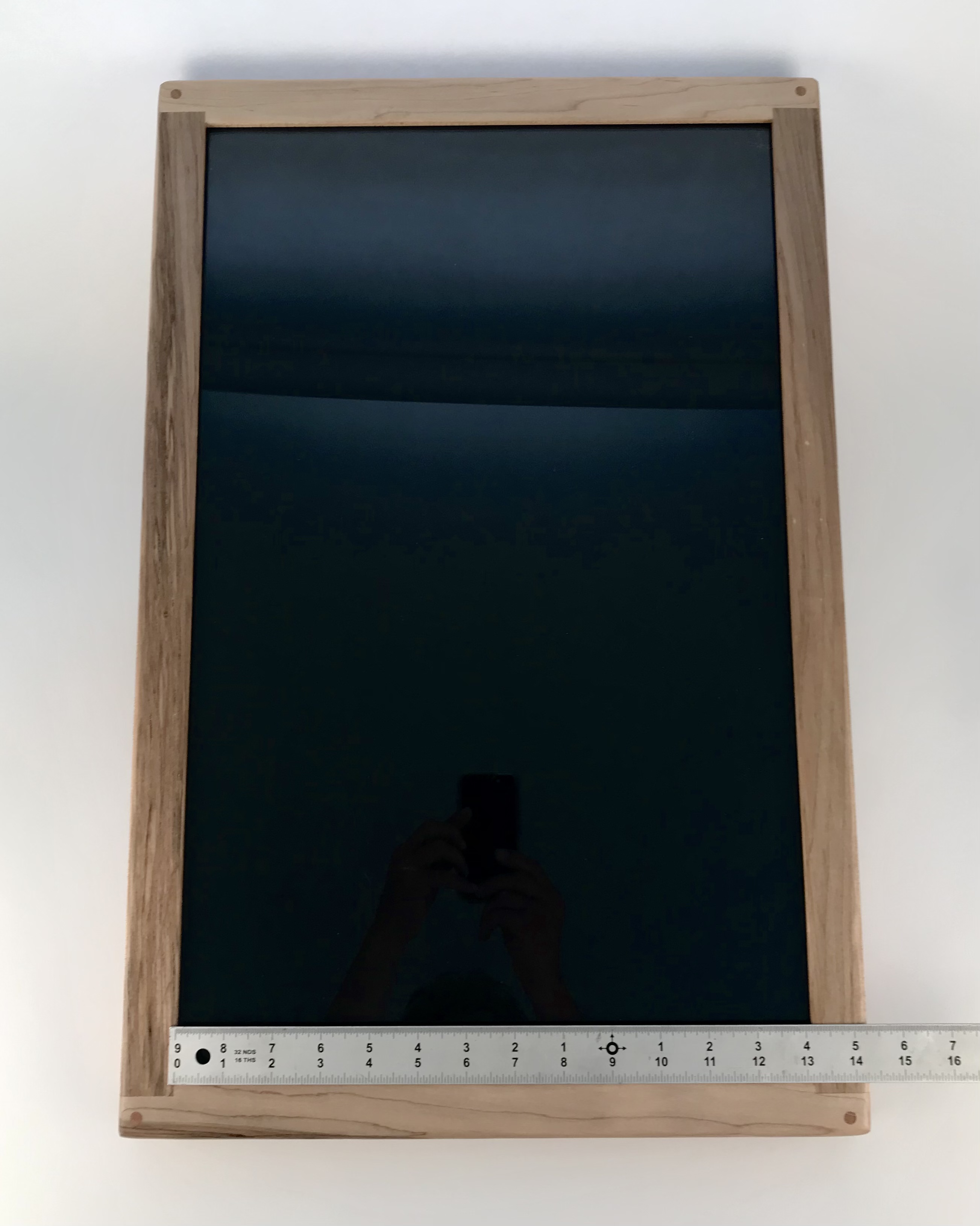 I have for sale a beautiful 12x20 contact print frame for you Ultra Large Format types. It is made from Ambrosia Wormy Maple with a 1/2 inch void free Baltic Birch ply pressure plate that is covered in felt. The max image area is approximately 13x21 inches. If you need a different size please pm me. $285 OBO plus shipping. If you have any questions please let me know.