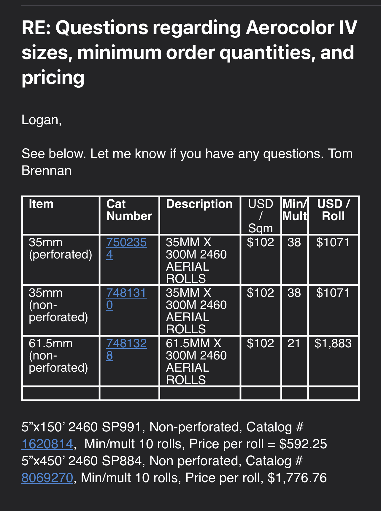 Yes, but min order is 10, so really it’s $6000 for 1,500 ft of 5” film.