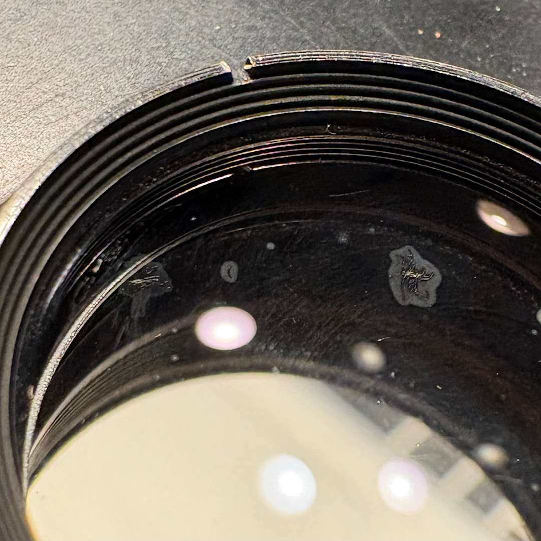 Now my main concern is the lens elements. Without even removing the lens board from the camera I can see that there are a few large specs inside the lens. Once I removed the lens board to inspect the back side of the lens, I could see lots of small particles of dust inside the lens as well. Additionally there appears to be something that I fear is fungus inside, closer to the rear element. (I will attach photos if I can figure out how). On top of that, there appears to be lots of fine, (and hopefully light) circular scratches on the front element. It looks like someone used their shirt to try to wipe the lens.