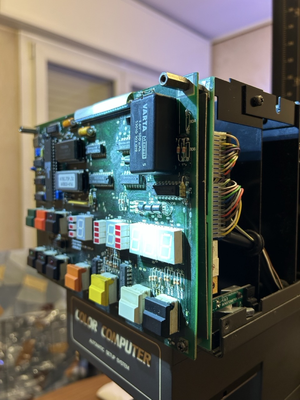 I'd start by verifying power supply to the IC's on that board and also scoping the power to see if it's stable. If that looks good, figure out how the Zilog CPU is connected to the LEDs and the 7-segment displays and see if anything is happening along that path. At a glance, I'd say the CPU is connected more or less directly to the outputs & inputs on that board with not a whole lot in-between. Maybe some of the 74-series IC's are interfacing between some of the LEDs and the IO ports.