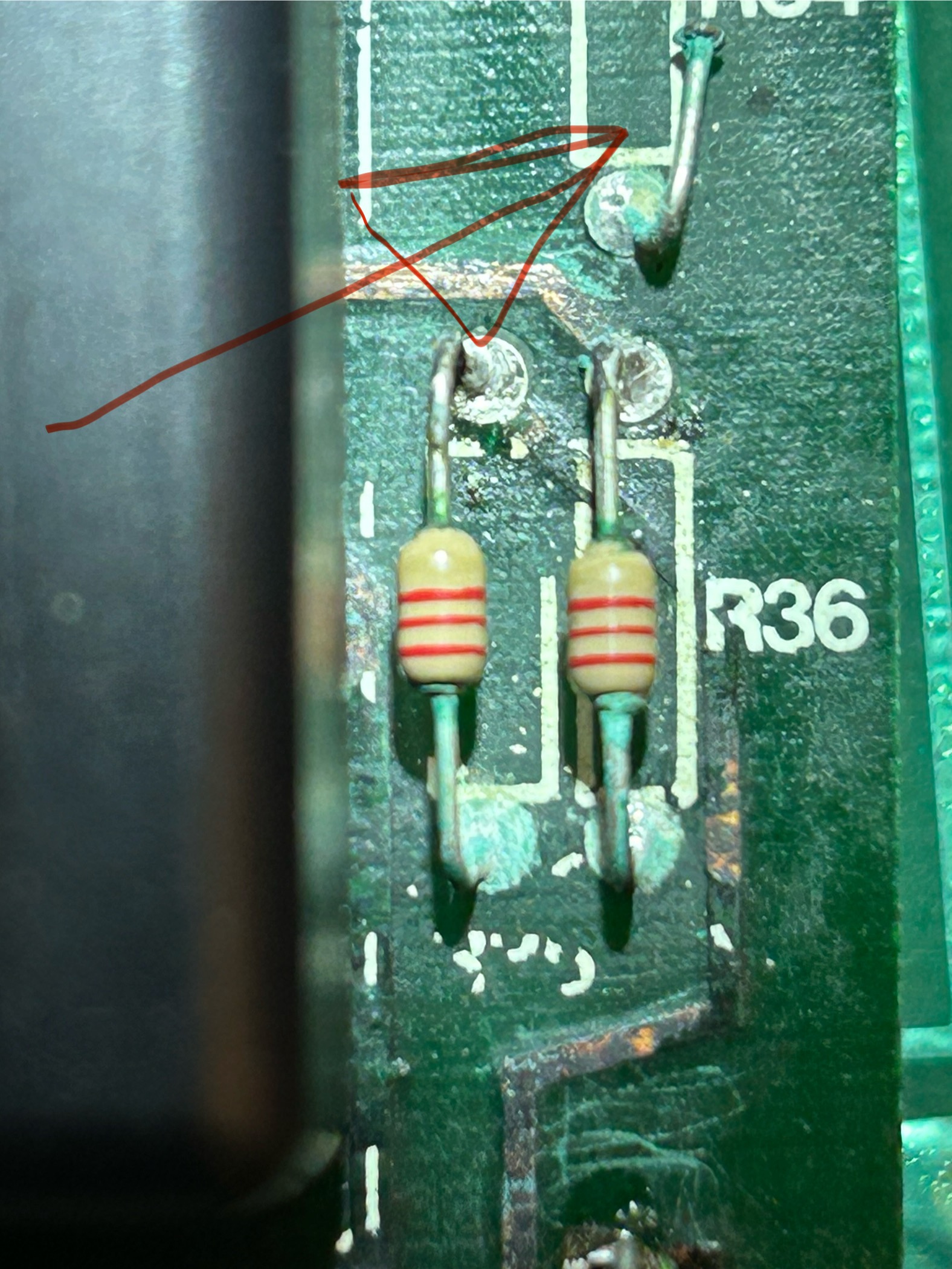 I tried a 2.2kΩ resistor like the ones next to it, just placing it on the old pins, and it didn't make any difference. I'll try removing the battery and checking the traces. Any other ideas on what to check would be appreciated.