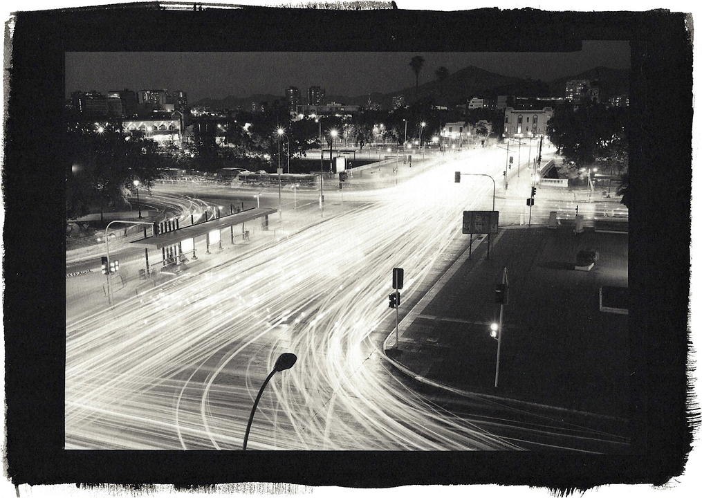 I took a meter reading (Pentax Digital Spot) of the pavement w/o headlights and based my exposure on that. I shut down to f32 because I wanted a very long exposure, not for DoF. I like what closing down did to the street lights, too -- almost like a star filter, but much more mellow.