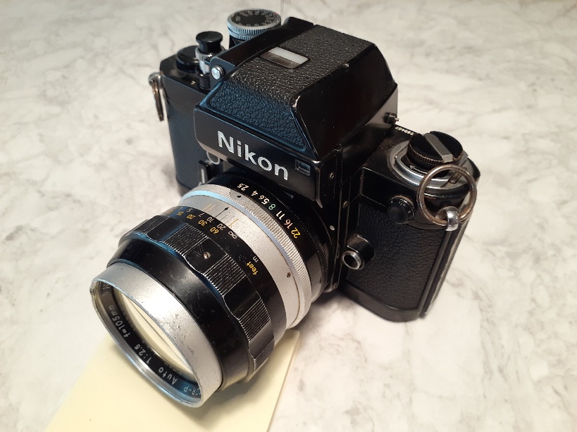 Selling to fund GAS! Black F2 with DP-1 finder and 105mm f/2.5 lens. The F2 seems to work fine, shutter speeds sound fairly accurate and curtains look good. The finder is inoperative. It has impact damage and does not respond with a battery. Prism is good though. Lens is cosmetically rough, but has good glass and clean aperture blades.