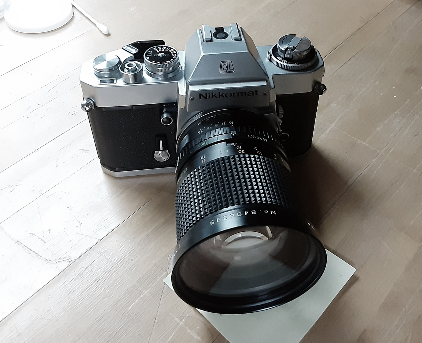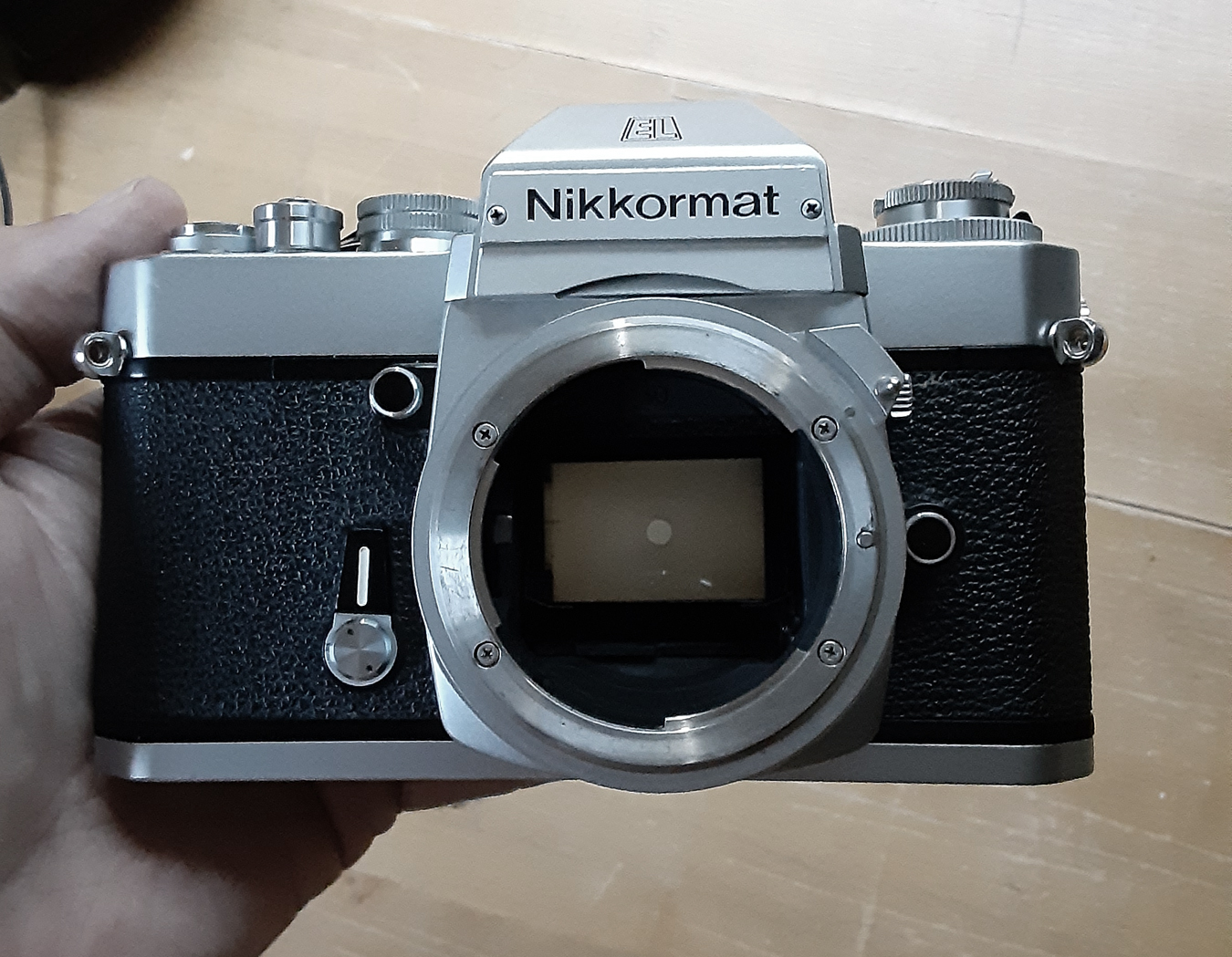 Nice Nikkormat EL that appears to be a working EL, but I don't have a non AI lens to fully verify that. The only Nikkor lens here is an AI Zykkor MC Macro 28-80 f3.5/4.5 (included in the sale).
