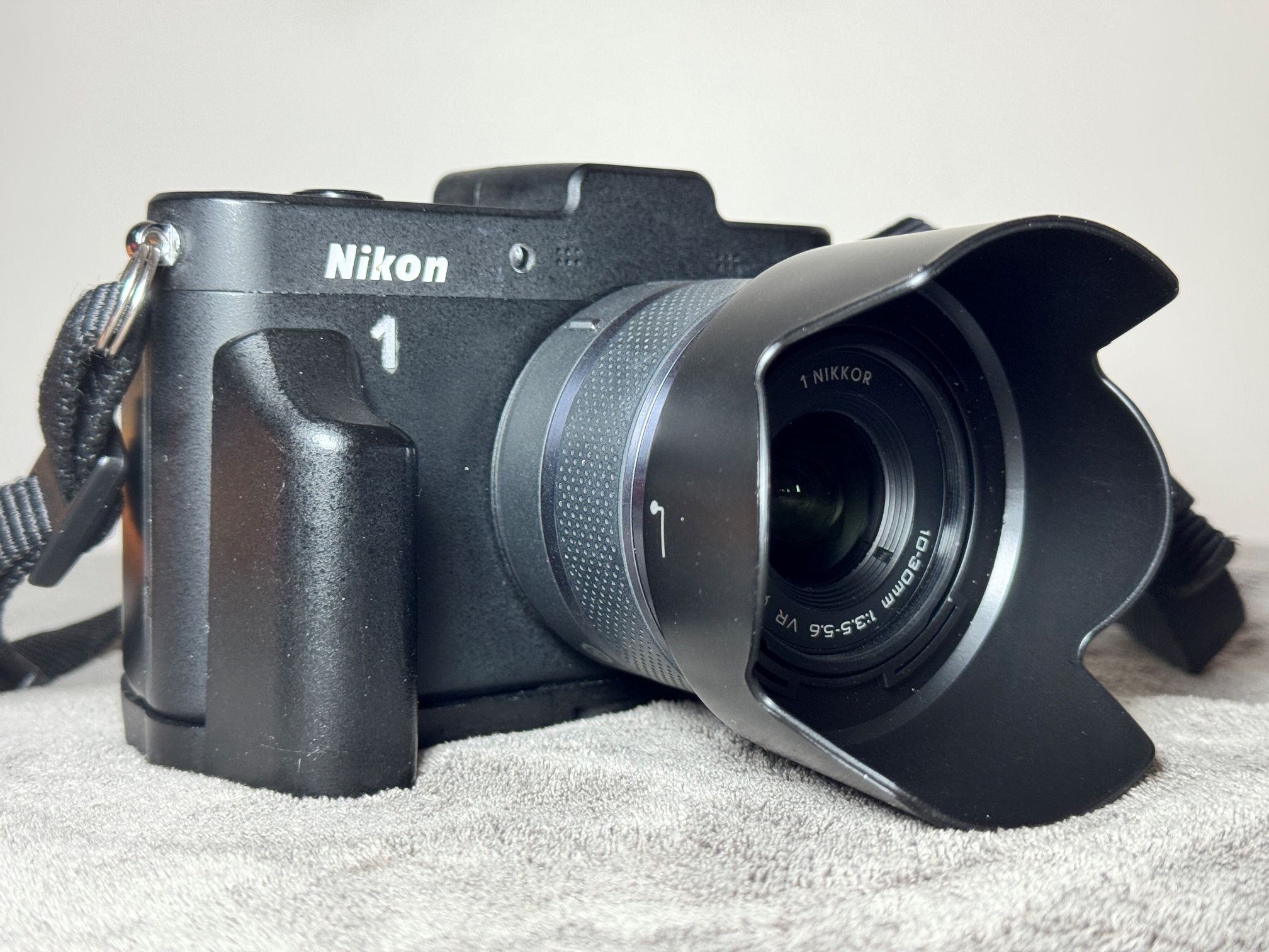 The Nikon 1 V1 with 10-30mm VR lens and 10mp sensor is a compact and lightweight mirrorless interchangeable lens camera. It offers a 3x optical zoom and comes in a sleek black color. With its Nikon 1 series design, this camera provides high-quality image processing and advanced features for capturing stunning photos & videos. The included grip ensures a secure hold for comfortable shooting, making it a versatile and reliable choice for photography and video enthusiasts.