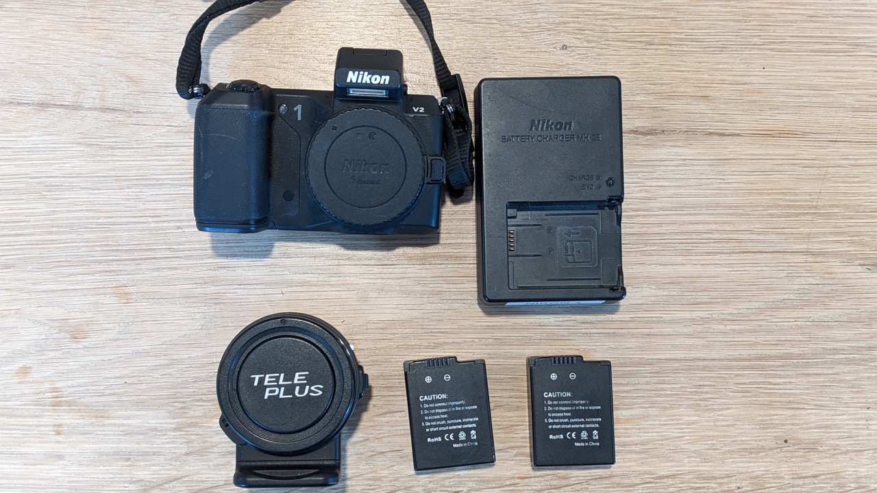 Nikon 1 V2 body with FT-1 adapter, 3 batteries (1 original, 2 from 3rd party), charger and all caps for $180. Bought this kit from FredMiranda for use with F-mount long zoom lens (AF-S 70-300 VR). Everything work well, and KEH BGN grade cosmetics. Decided to stay with my Nikon Z system, thus selling. Paypal and shipping included for US 48 states (from CA 94010).