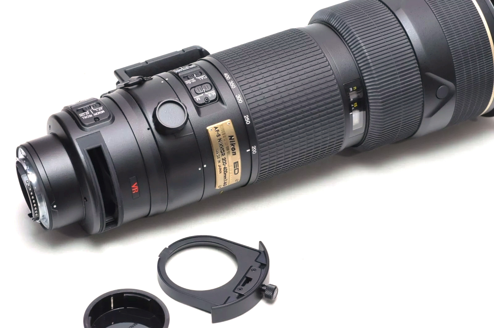 Nikon 200-400mm f/4 AF-S Nikkor ED lens in excellent condition with the Nikon hood and case, in the original box. The glass is perfect and the only scratches on the body are on the front rim from attaching and detaching the lens hood.