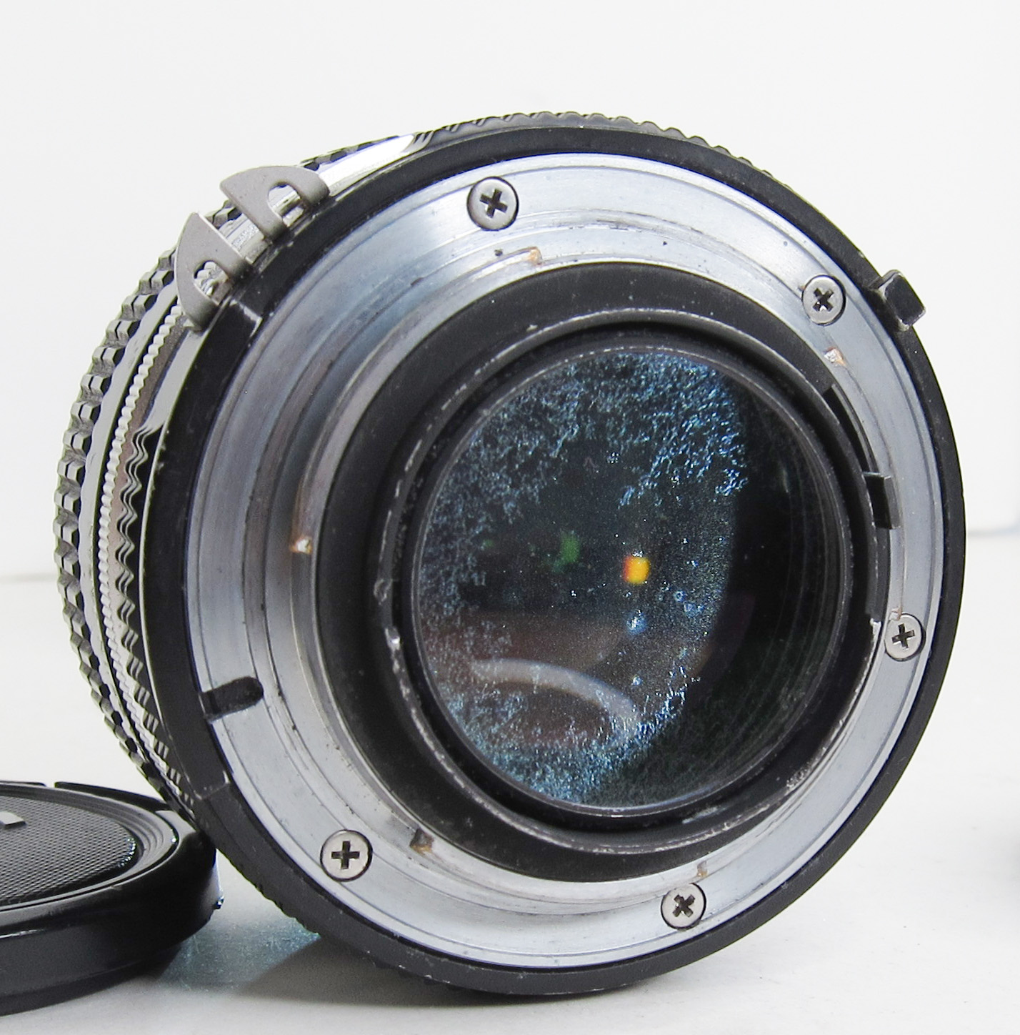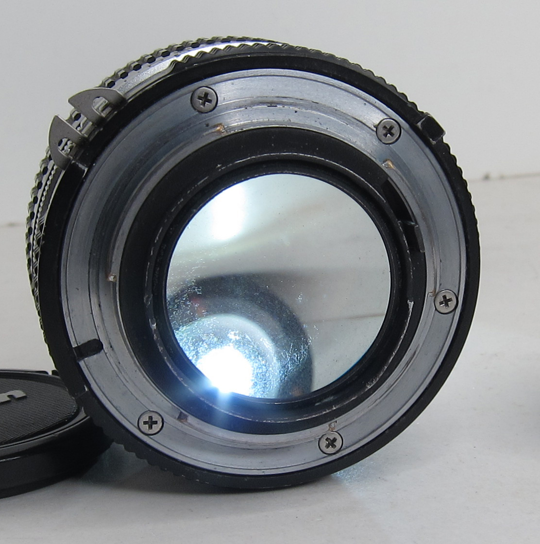 Lens is usable, with some internal fungus. Snappy aperture. The black rear metal rim has some wear/bending to it.