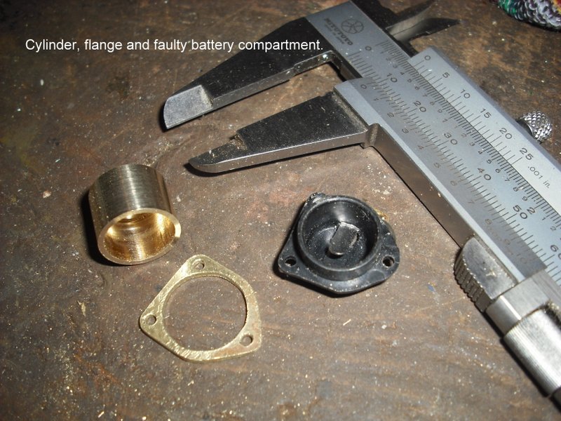 I experienced a problem with the DP-1 meter on my F2. Even the battery check was erratic, suggesting a power problem. With the base removed and the use of a multimeter, I traced this to somewhere between the sprung contact of the battery compartment and the point where the yellow wire joins the meter switch. A Google search threw up Robin's excellent description of the disassembly process. Though the Nikon manual is available online, there's no substitute for someone's personal experience. The problem was revealed as being threefold: the plastic lug to which the solder tag is attached was broken off (a previous attempt had been made to melt it back on to the body, probably with a soldering iron), the screw securing the solder tag to the contact was loose and the end of the yellow wire was green and corroded. The plastic battery carrier was beyond repair. I tried a few of the usual sources for a replacement unit, but was unable to obtain one. I decided that I'd have to make a replacement. being locked down, I had plenty of time! The ideal material was brass, being easily turned, filed and soldered. Of course, being conductive, I had to be careful to insulate where necessary. The end result works very well and is, I think, more appropriate to a camera of the F2's quality than the cheap and cheerful original plastic part. As a small 'mod', I elected to make the contact inside the body fixed rather than sprung, moving the sprung contact to the battery compartment cap. the contacts I used were parts obtained from a small relay.