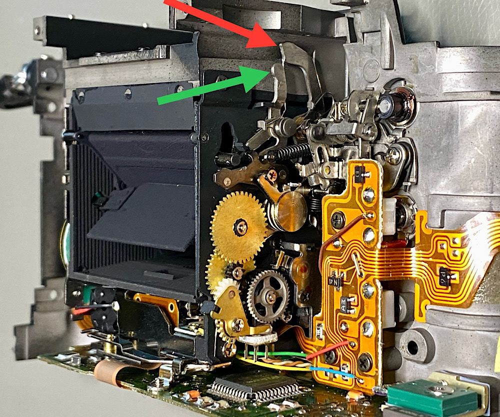 A big thank you to @vandergus for this tip with video that explains how the aperture control mechanism with ratchet gear, coupled perforated disk and photointerrupter works on a Pentax SLR.