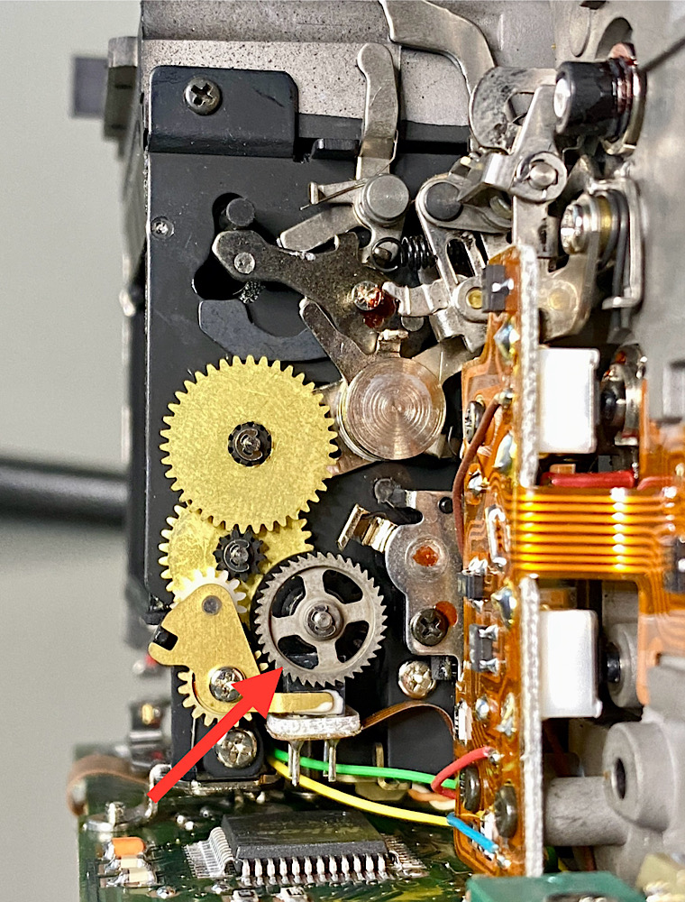 The ratchet gear in the middle left has an oily sheen and runs freely. It is the gear that makes the aperture control sluggish if it is not lubricated. So here I was successful with my oil injection.