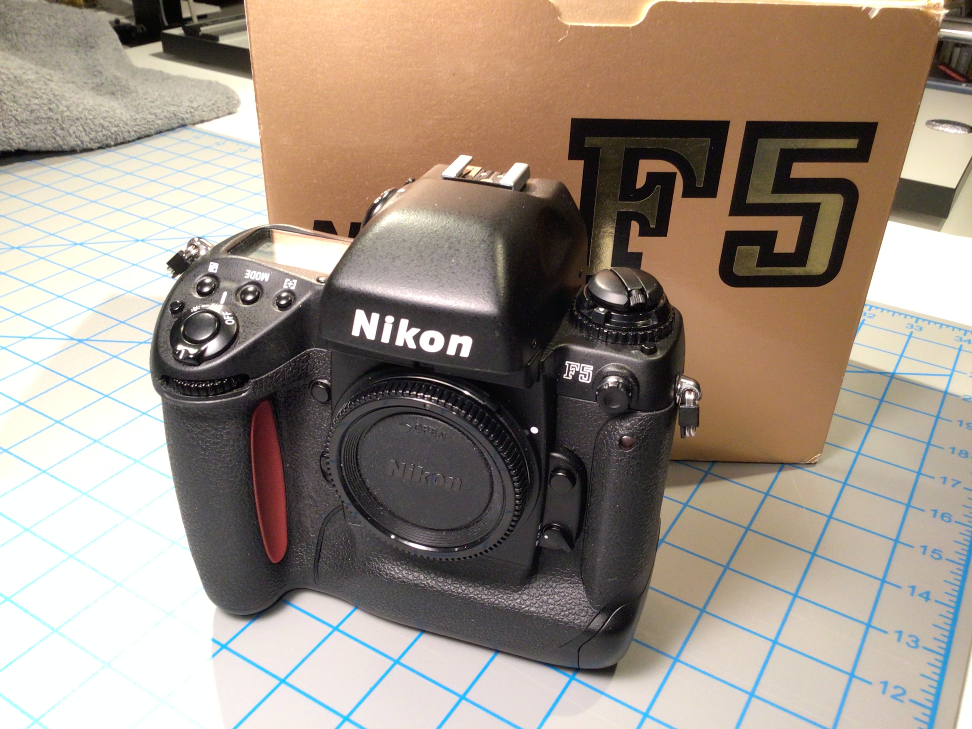 This Nikon F5 has seen very little use and has almost no marks on it, with the exception of two small rub marks on the bottom. Please check the pictures and ask any questions. Included Is the original box and the instruction manuals. $400, plus $35 CONUS shipping.