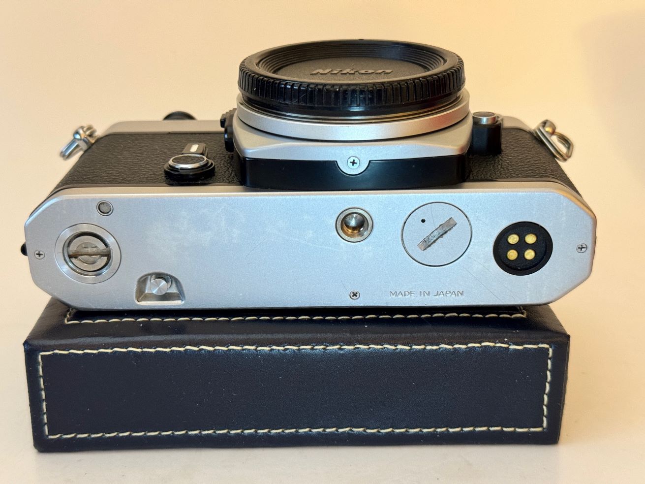 This camera is cosmetically in excellent condition and working order. New door seals and felt mirror bump stop. Speeds and meter are accurate and give properly exposed pictures. Viewfinder is clear, mirror and battery compartments are clean as well.