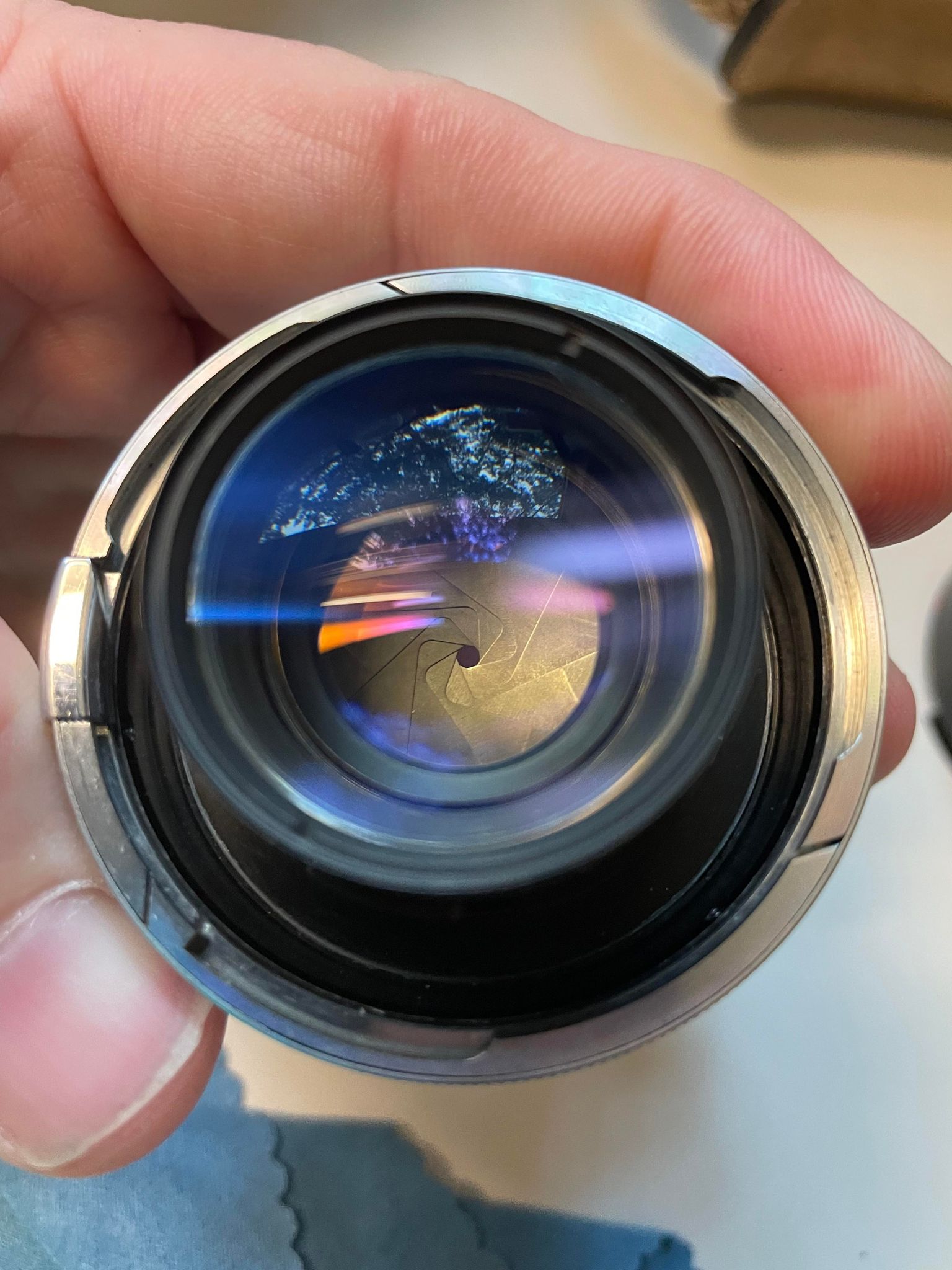 This one is in excellent condition. Fantastic glass, blades, and everything. Very fluid focus. Has a rear cap, but I don't think I have a front one. I will ship it with a filter attached for extra protection before packing up.