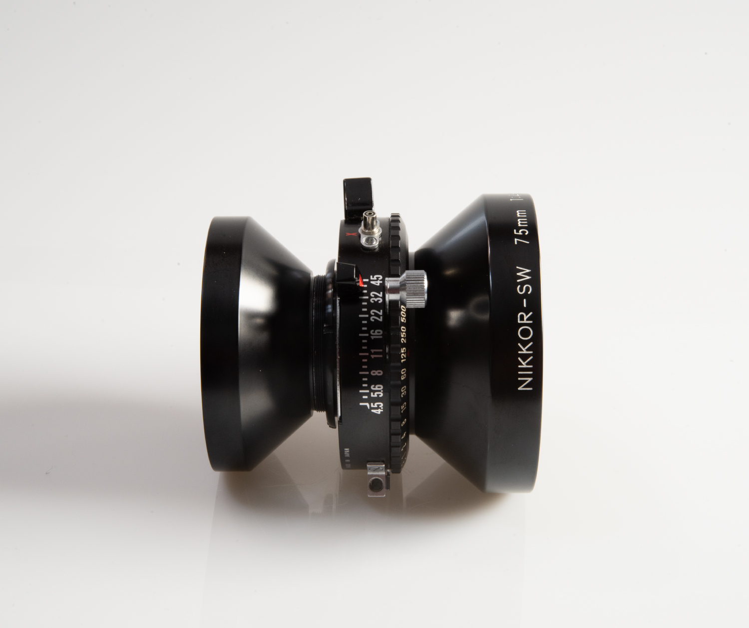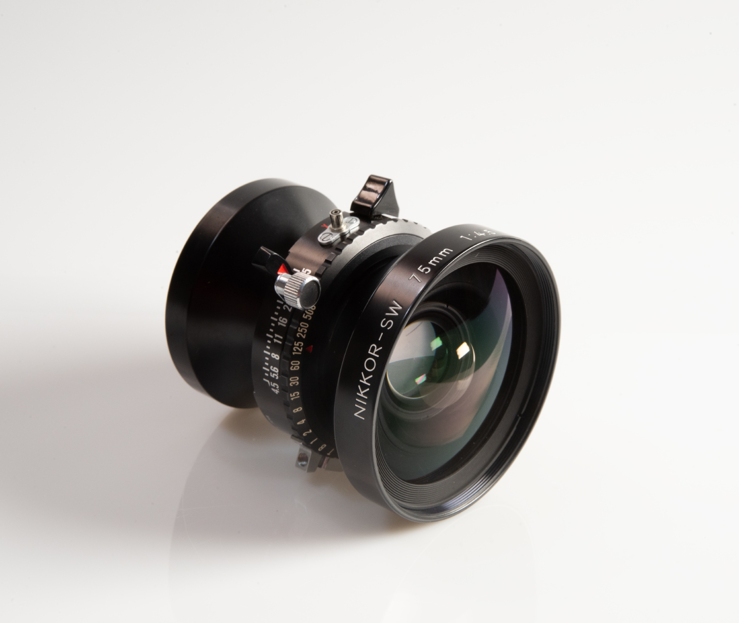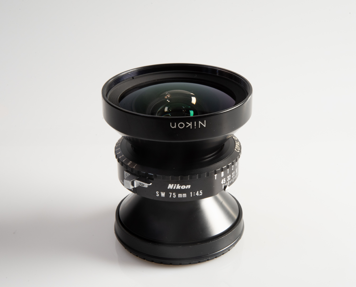 Nikon Nikkor-SW 75mm 1:4.5 Lens in Copal 0 Shutter in excellent condition.