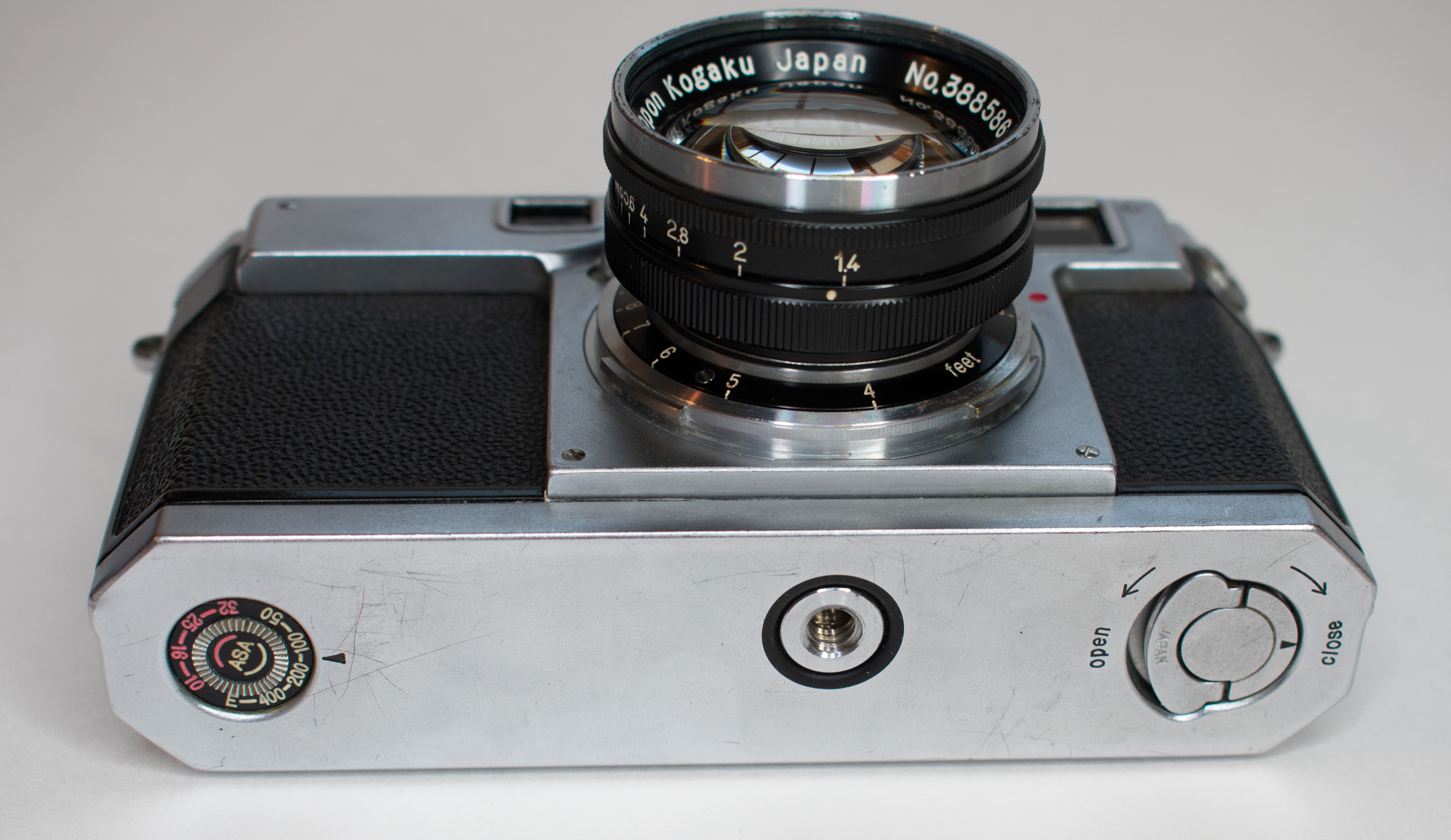 Camera and lens in very good shape. Shutter works well at all speeds. Rangefinder works good also. The focusing works fine, but squeaks a bit, perhaps needs a little lubrication.