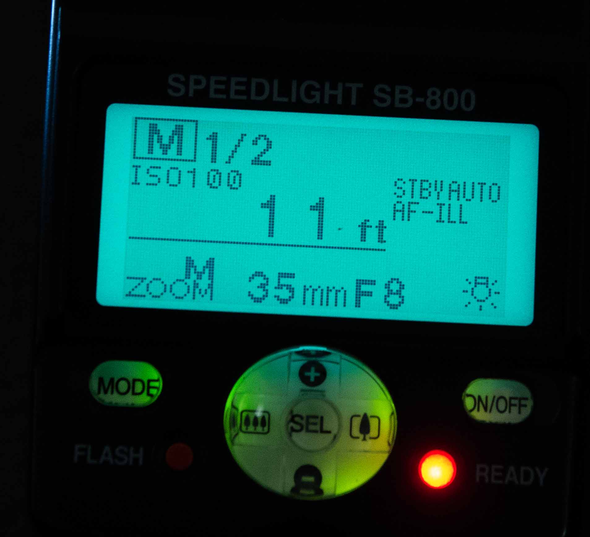 This image shows when the power was set at full. 10ft at f/13 (the GN is 125 so the f stop should be 12.5 but rounded off to 13.