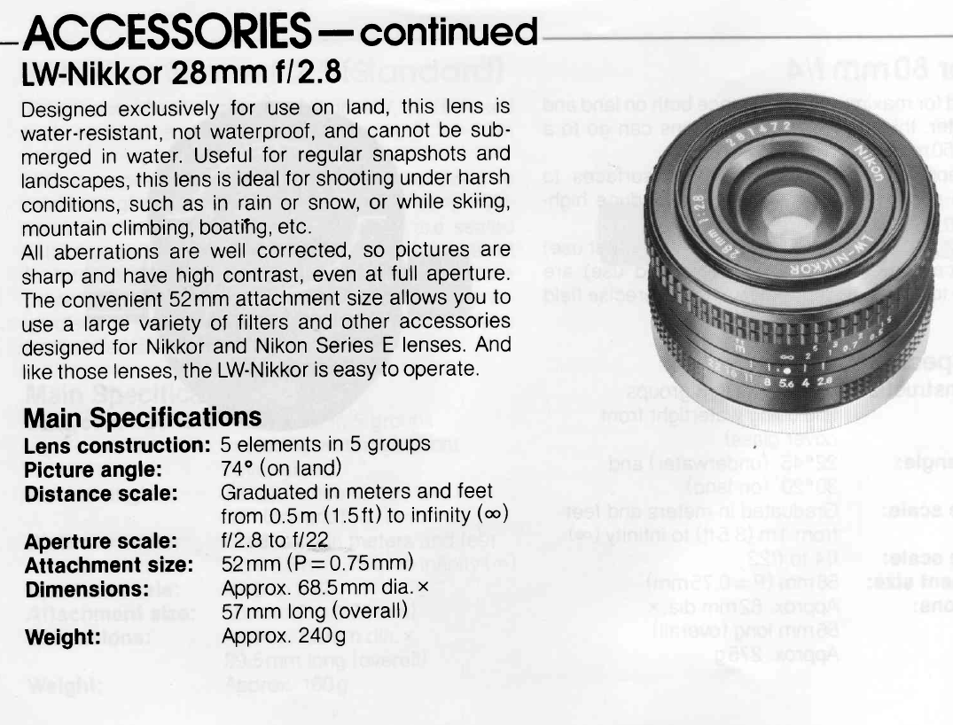 Note that the 28mm U/W Nikonos lens cannot be used above water.