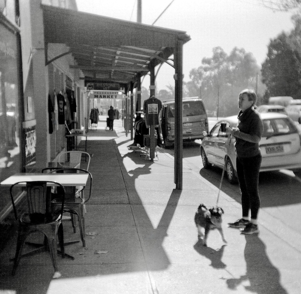 I'm reluctant to show it, our Fed Govt won't like what I said about the dying town, plus I have other reasons. It's not a photo I wish to make public, it's endearing to just me and the folk who live in my wider location. So I'll show another street scene I took on the second film I exposed in the same camera at a different time. Nothing in this pic was posed, just took the scene as it was.