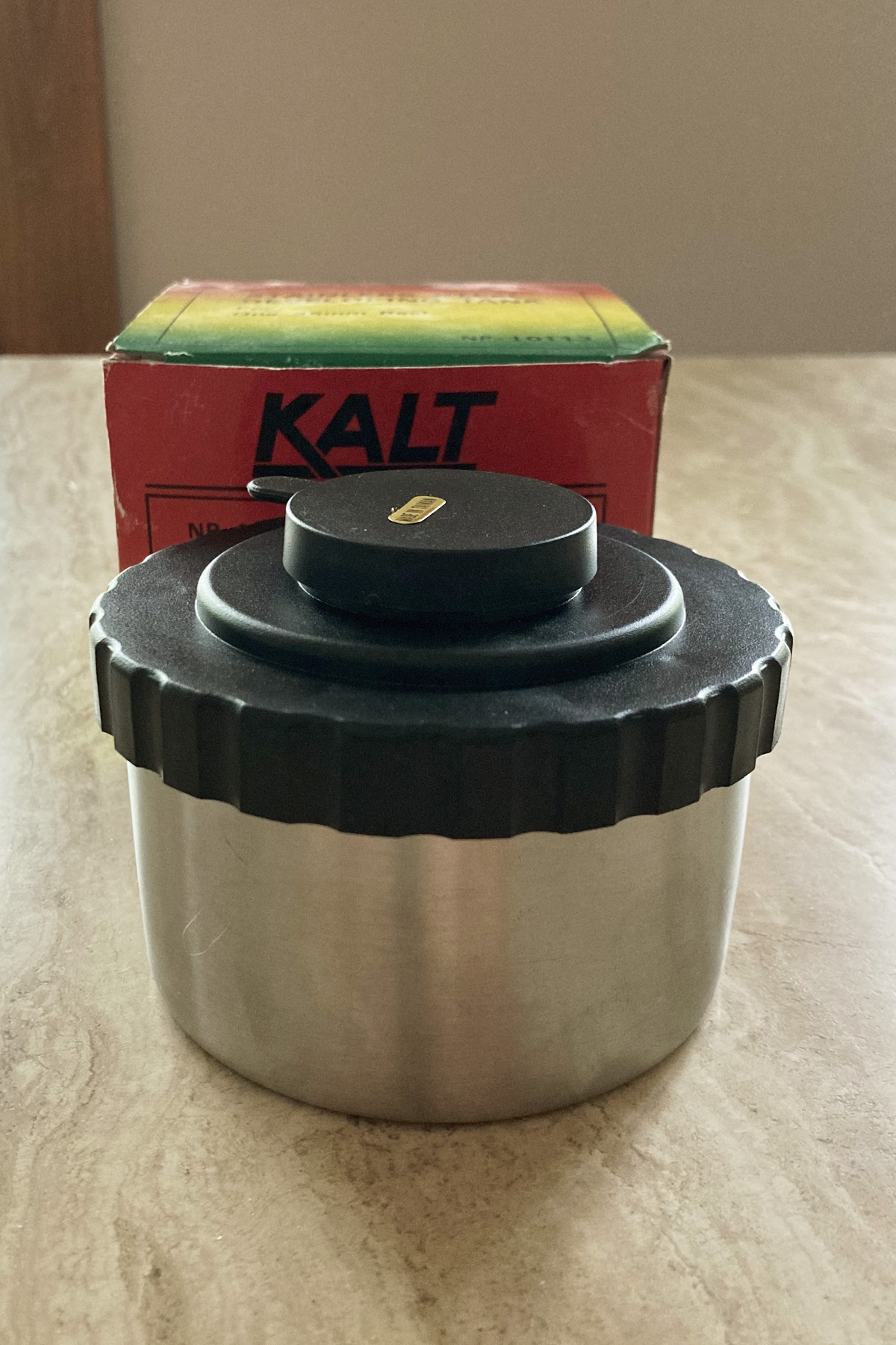 New, old stock, in original box. 1 reel (35mm) tank and lid from Kalt. No cracks in lid. $14 plus shipping.
