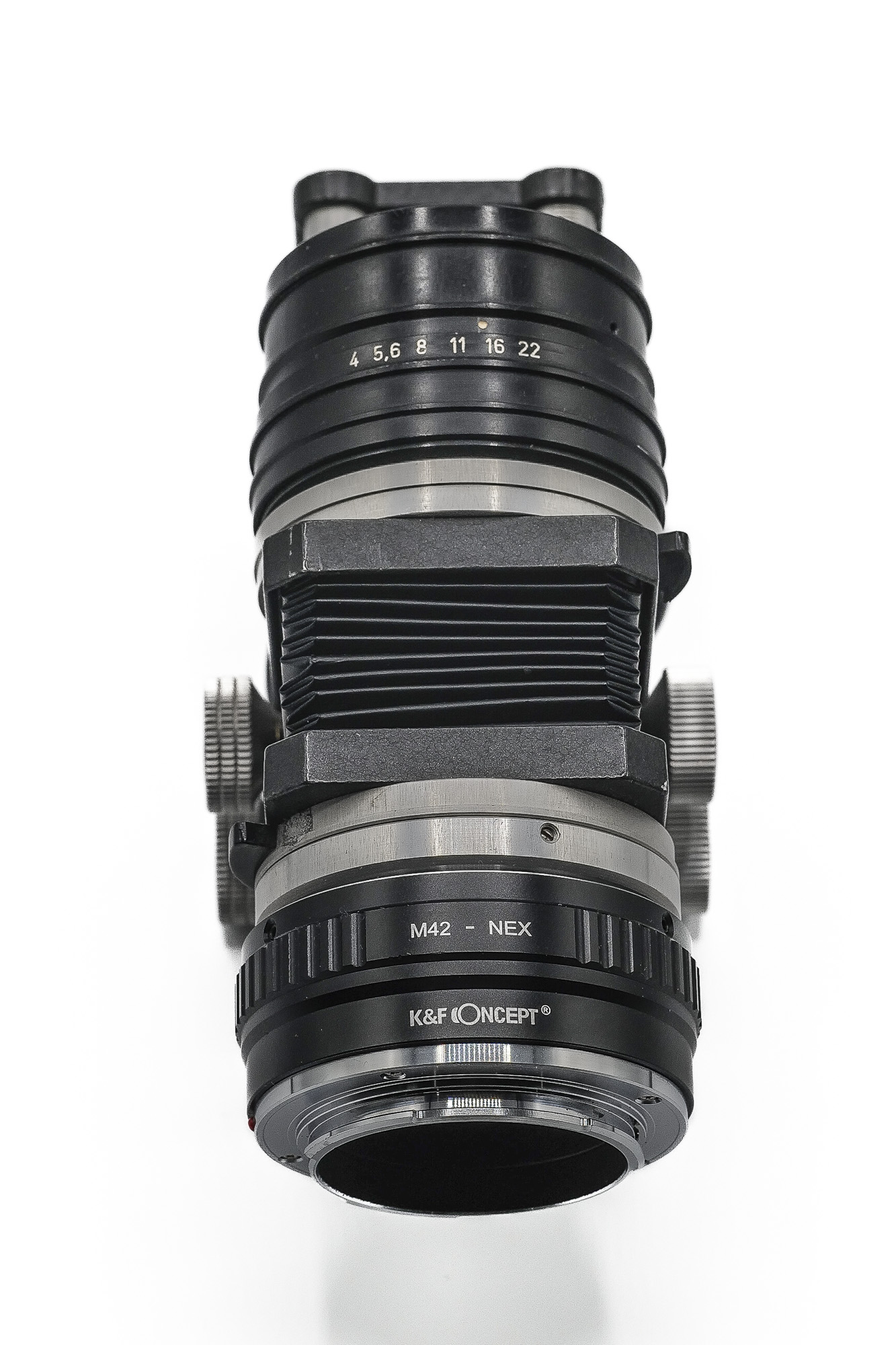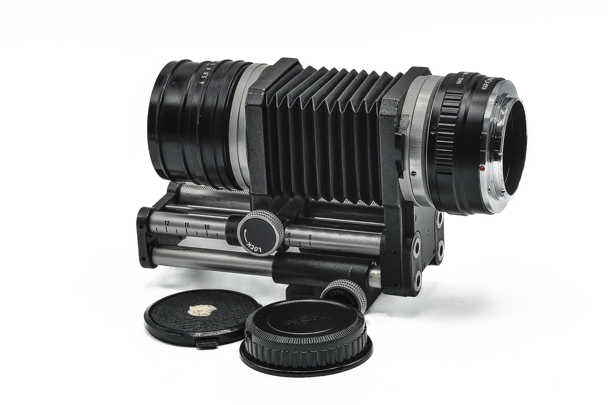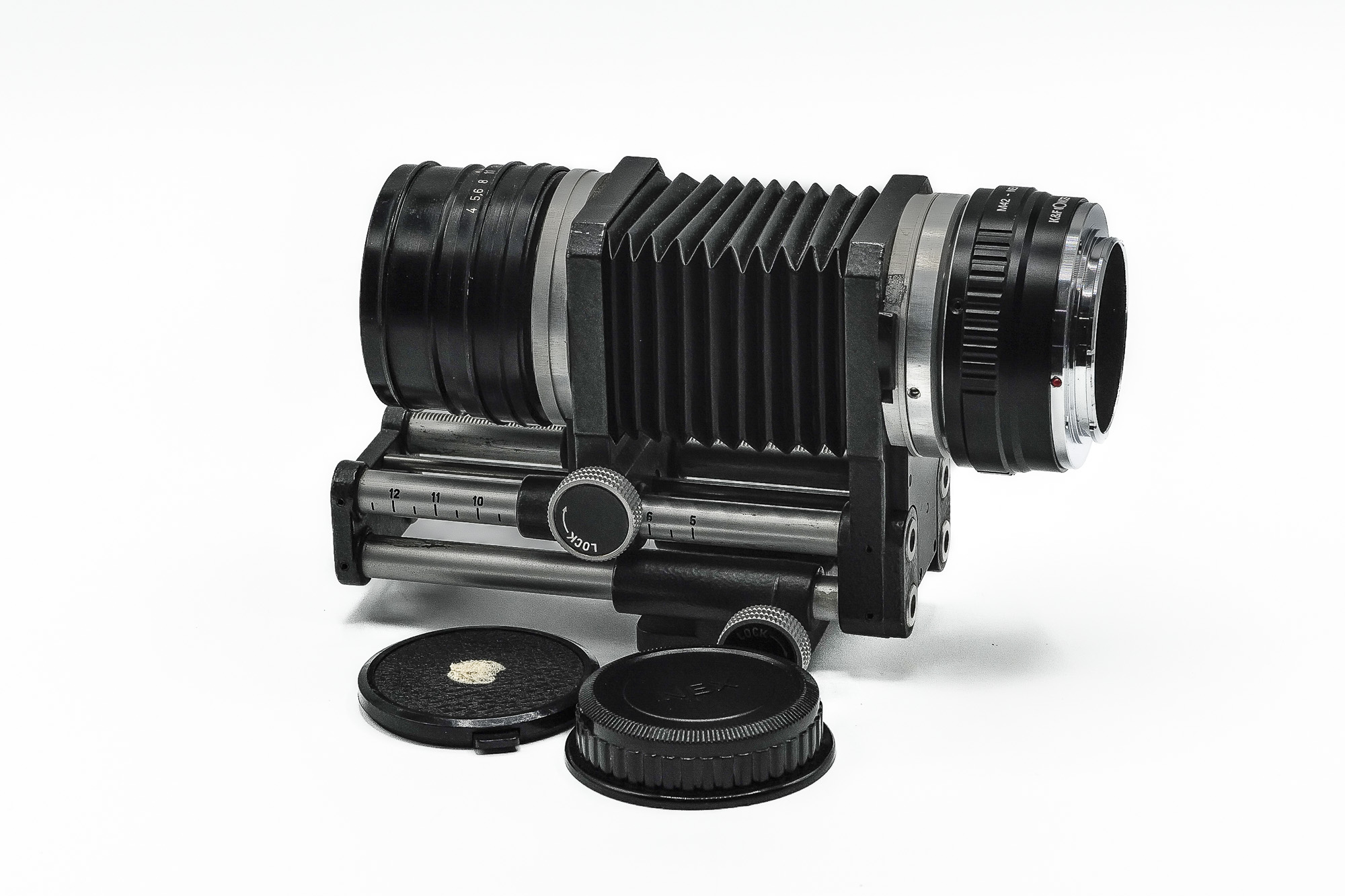 Macro Bellows w/Sony Adaptor in great shape. I believe the native mount is the Pentax M42. I put on the Sony NEX adaptor but you could easily find whatever adaptor you need other than Sony. These are really fun to mess with. First 50.00 drives it home! 15.00 Shipping.
