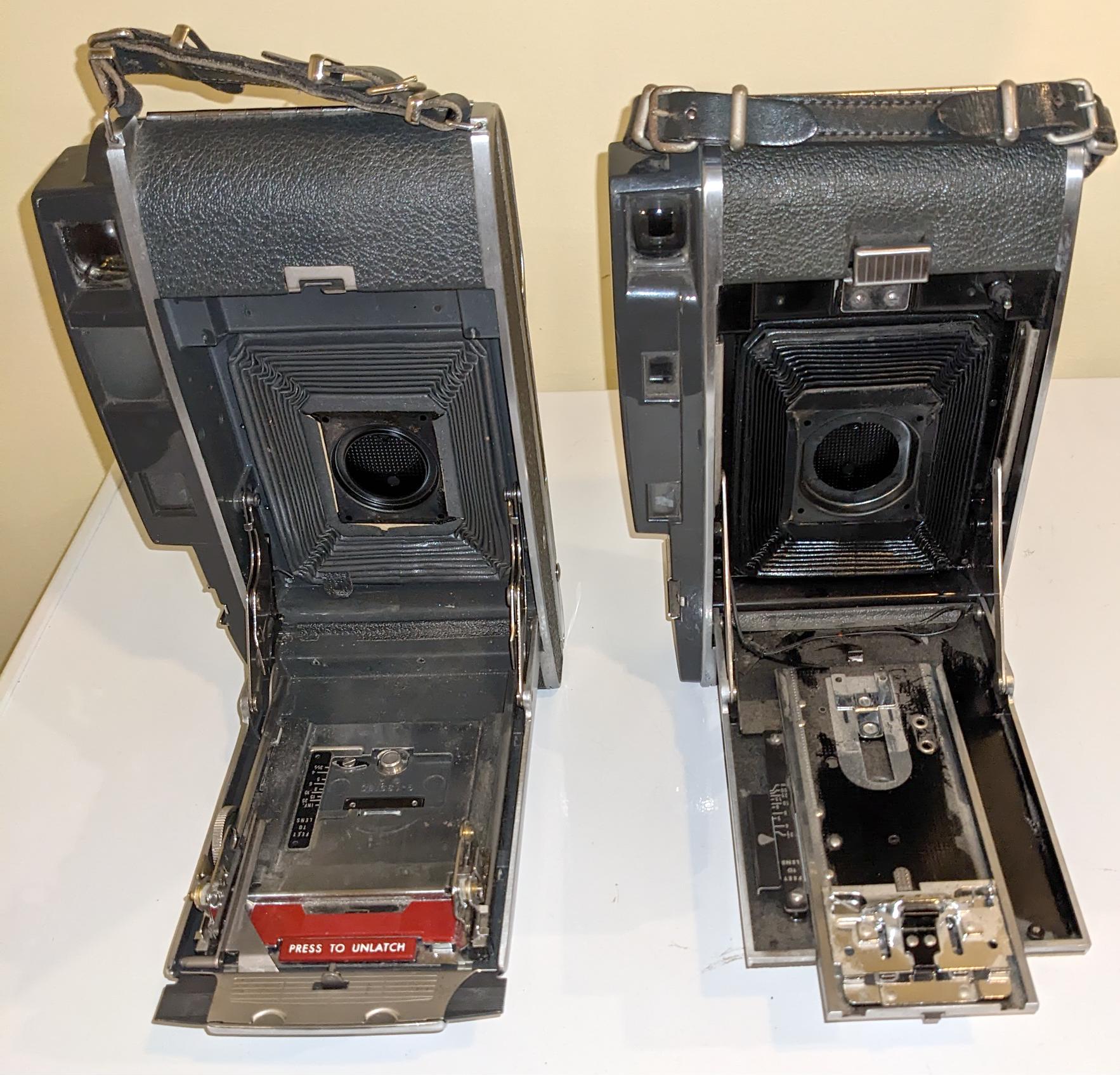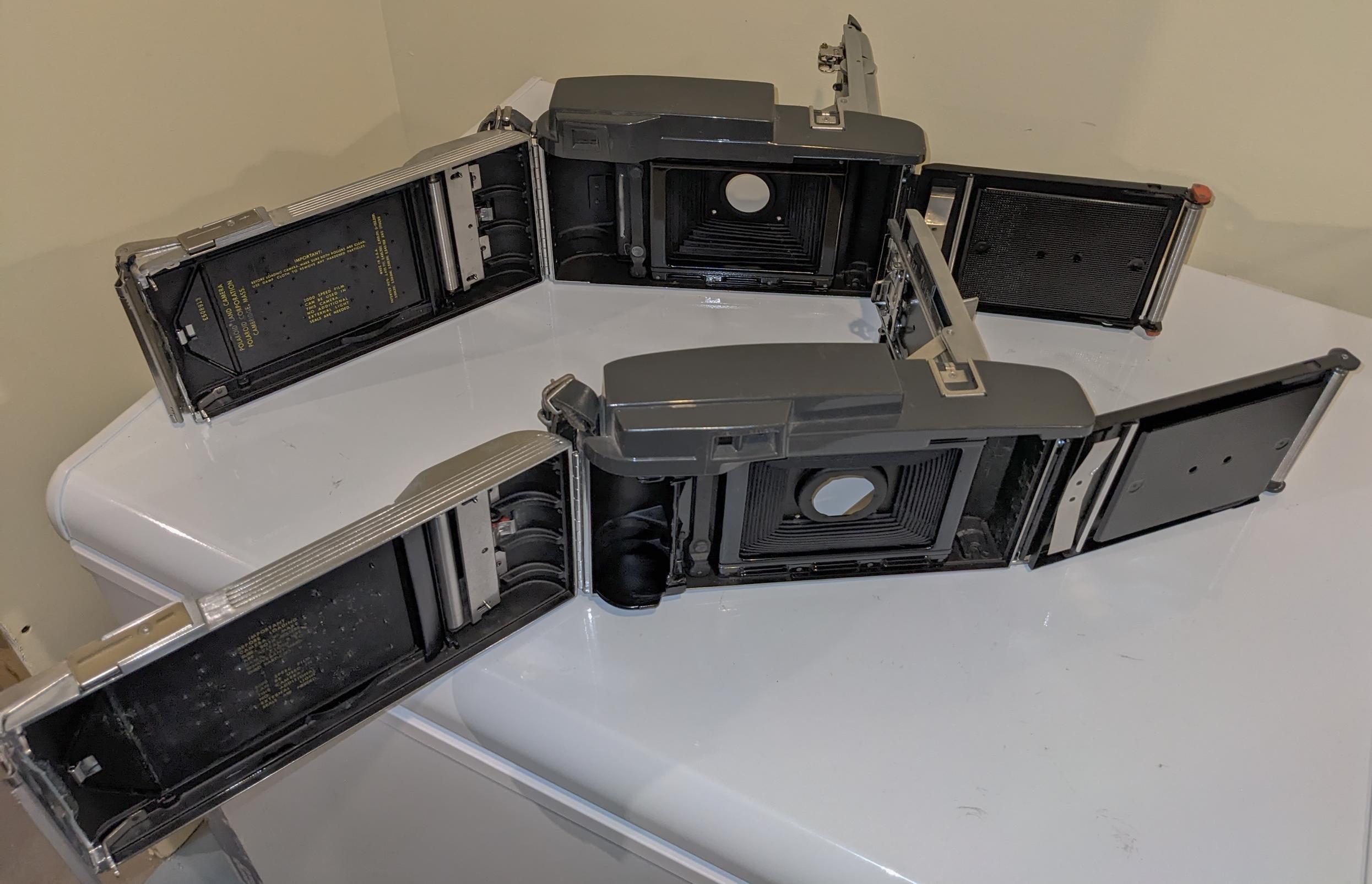 Polaroid 160 and 900 I originally planned to convert to something like 4x5 sheet or 6x10 roll but lost interest (absolutely no need for me to bother with all the cameras I now have but it seemed cool at some point in time).