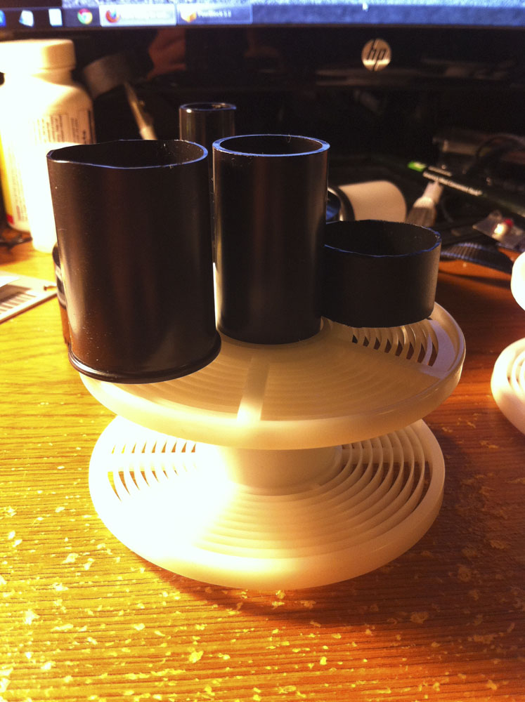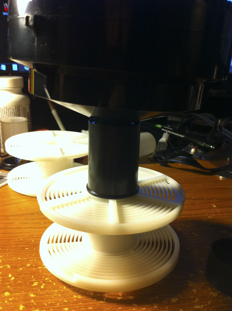 To make, all you have to do is take a old canister, black preferably, (but honestly the clear ones don't match as well lol), stick one reel on the center light blocking column, put the canister on top of the reel, against the column, and use the top of the column as a guide to score the can with a knife. then take off the can and use your knife to cut along the score line, and be sure to remove and sharp surfaces or hanging plastic burrs either with the knife, or by sanding lightly.