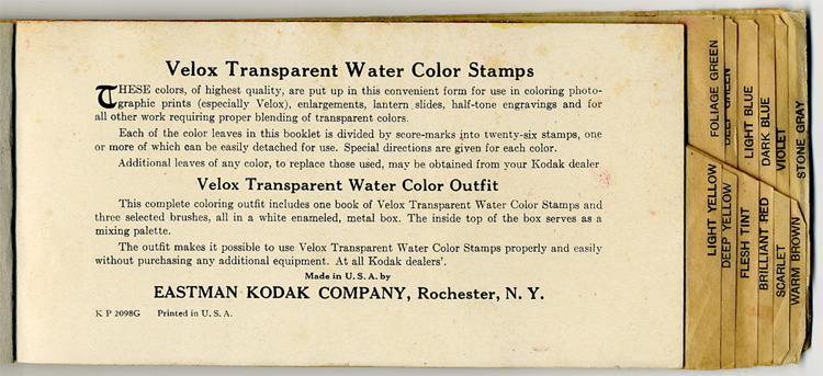 Cleaning out my Dad's darkroom after he died, back in 1999, I came across some very interesting things. One of them was a book of tinting papers. These are Kodak Velox papers. You use a wet brush, and can pick up color and tint your prints.