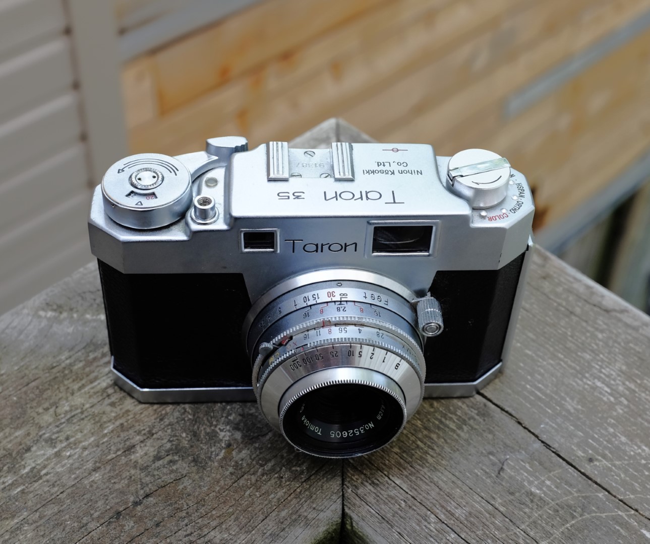 Taron 35 RF. Functional but not film tested. Advance lever a bit slow to return. Includes leather case. 20 CAD sold