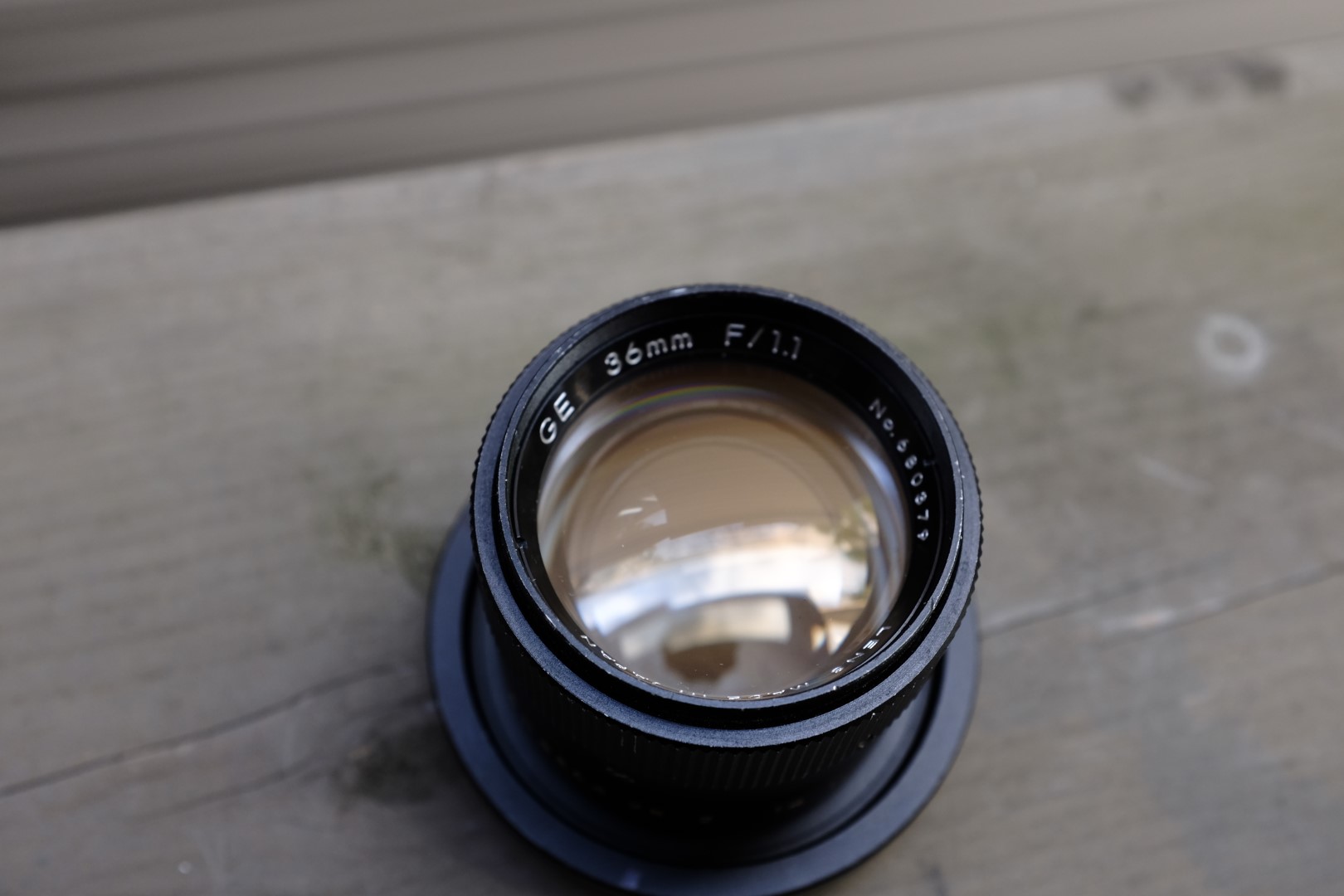 GE 36mm f1.1 C-mount lens with Sony adapter. Tested a few years ago and almost covers APS sensor. Focus is a little stiff. 60 CAD.