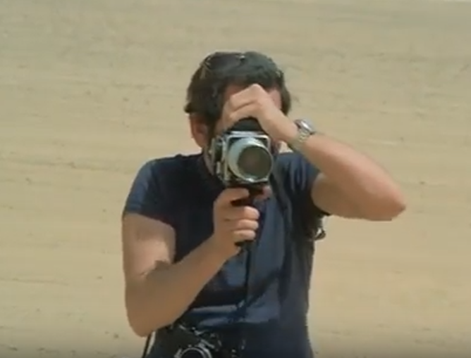 the opening sequence shows someone with a nifty camera, maybe a mamyia press camera