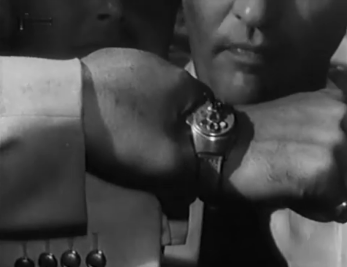 The most easiest mark would be a black visual impression from the meter scale window. With a lot of goodwill such could be guessed at a single franme in this scene.