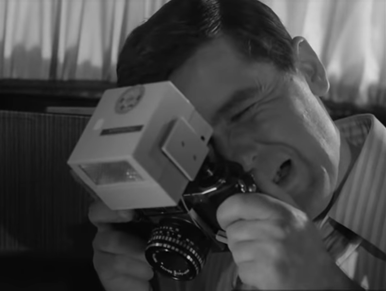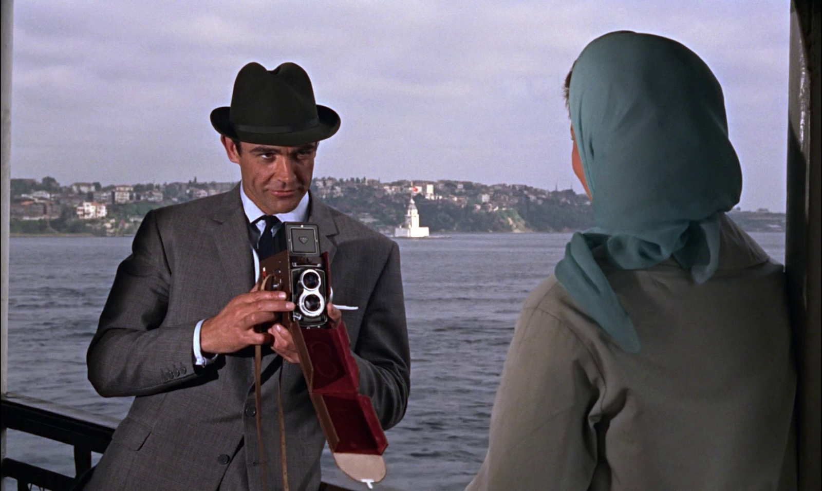 For some reason, I also noticed the spy girl watching Bond in Dr. No, at the airport, is holding an old press camera. Maybe a Crown Graphic? Those are popular in films, perhaps because they look so big and important, and even used way after their time, I think I saw them in the Twin Peaks tv series too.