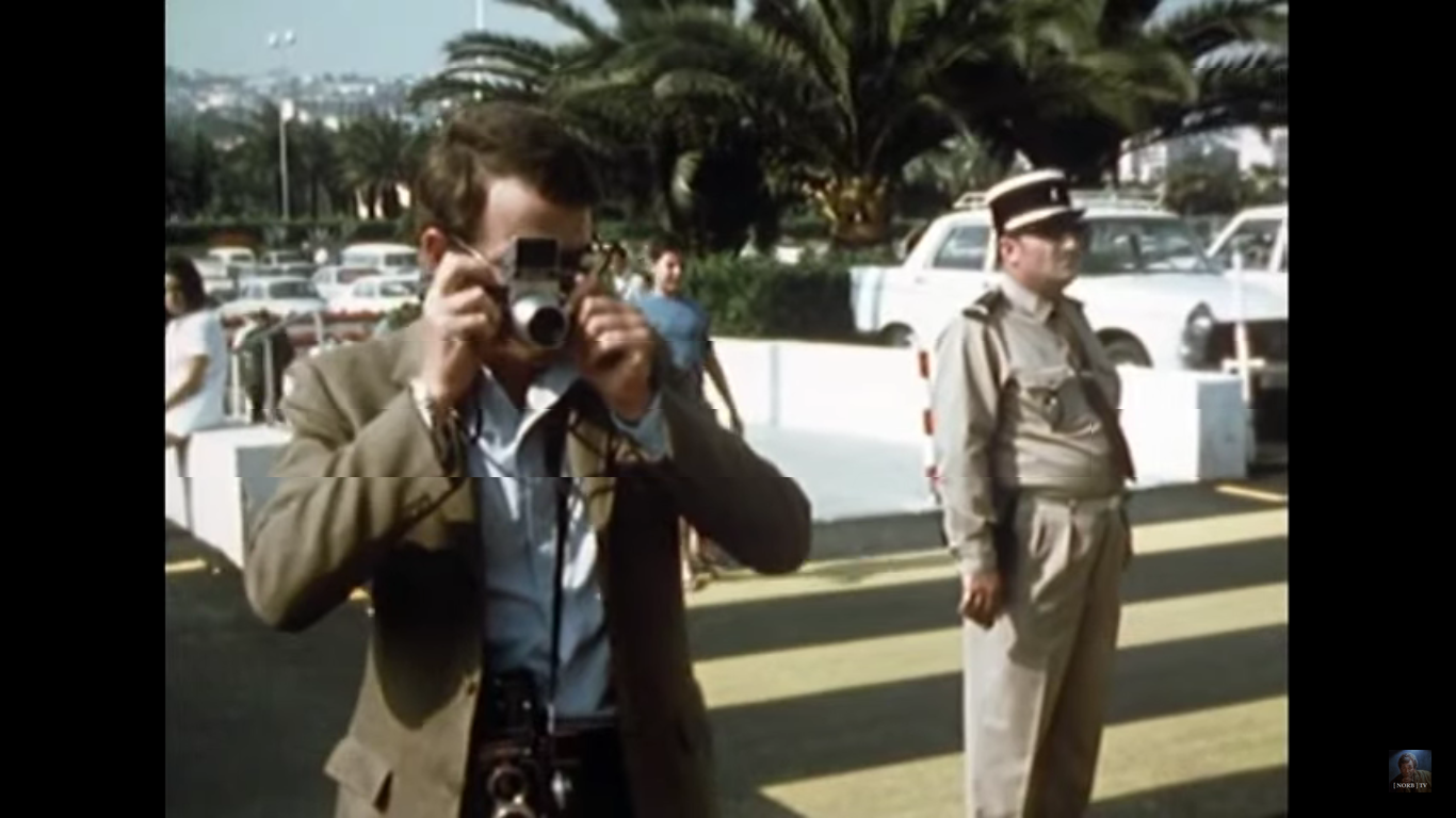 I just saw another good example this evening: Funny Face (1957) starring Fred Astaire and Audrey Hepburn. The opening credits have a Rolleiflex right next to a light box. Fred Astaire plays the part of a photographer who works for a fashion magazine. The ladies from the magazine crash into a bookstore in Greenwich Village and use it as a set for some photography. He is wearing three Rolleiflexes. In the public relations photo below, he added a Leica and a Norwood Director light meter.