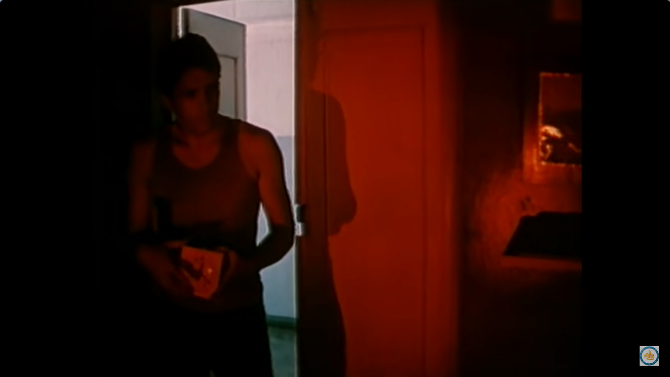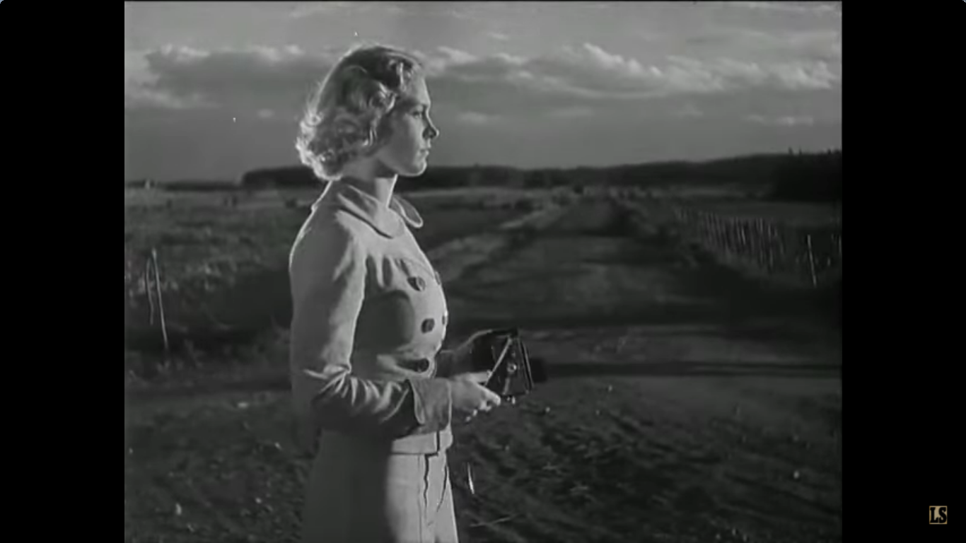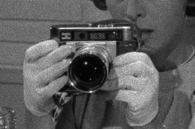 The interesting thing is that the movie starts with that boy-photographs-girl scene, then directly switches over, during opening credits, to an all-red darkroom scene. There, a guy enters the room, leaves the door open, backlighted, whlile the guy in the lab goes on developing his paper in the tray. For the rest of the movie no more hints at photography...