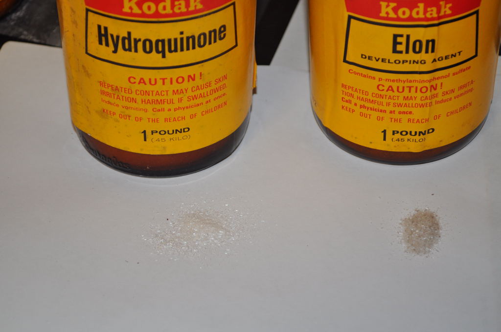 If the Elon and the hydroquinone are still white in color, and not all caked up, you should be alright. From what I can see, the lids on the jars look like they are in good shape, and if no air got into the containers, you should have some very useable chemicals.