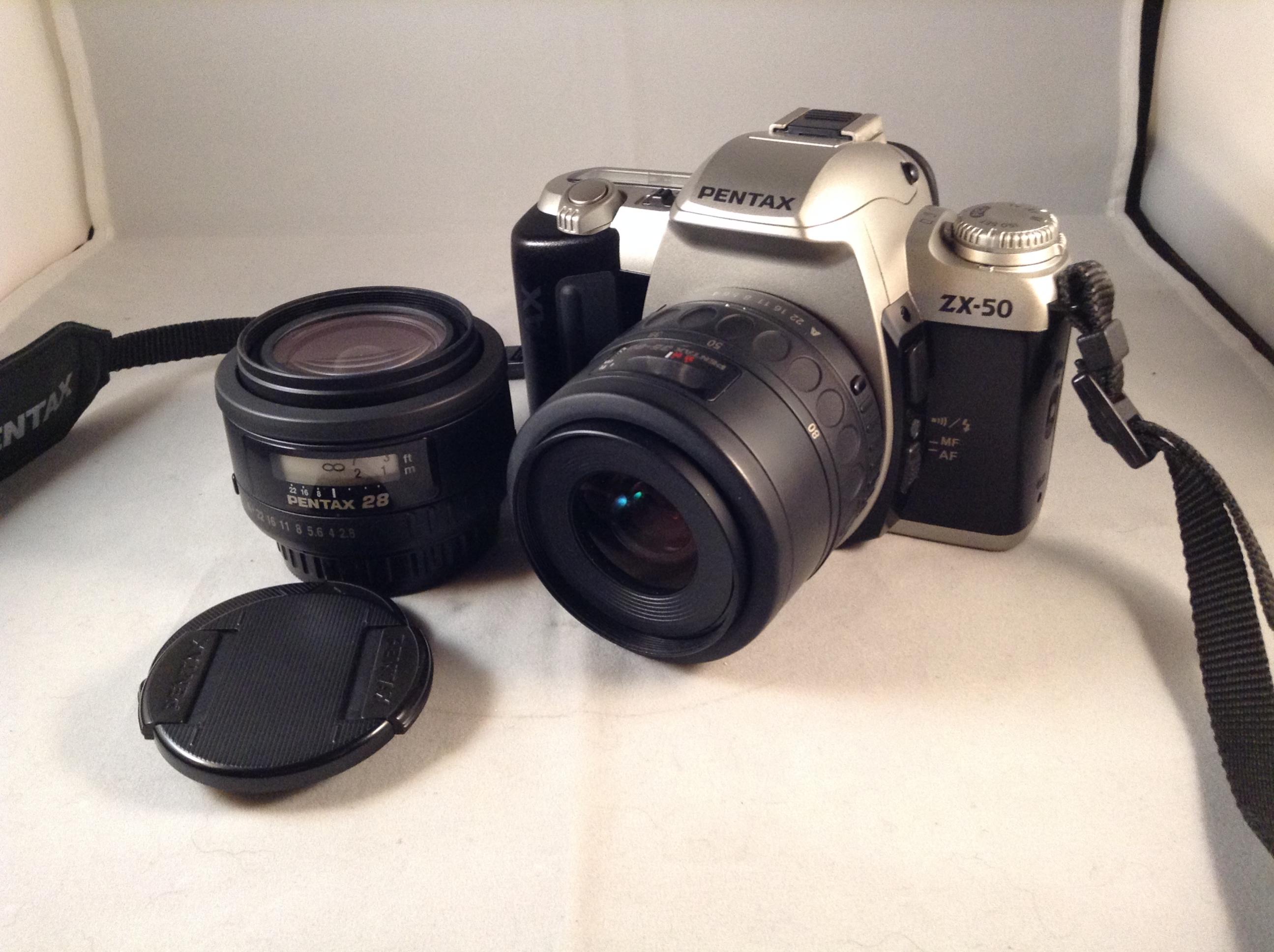 Pentax XZ-50, SMC Pentax-F 1:4-5.6 35-80mm lens and SMC Pentax-FA 1:2.8 28mm lens. Plus the strap. Sorry, I won't split up the lot, it's all or nothing. Should have mentioned that when I posted this earlier.