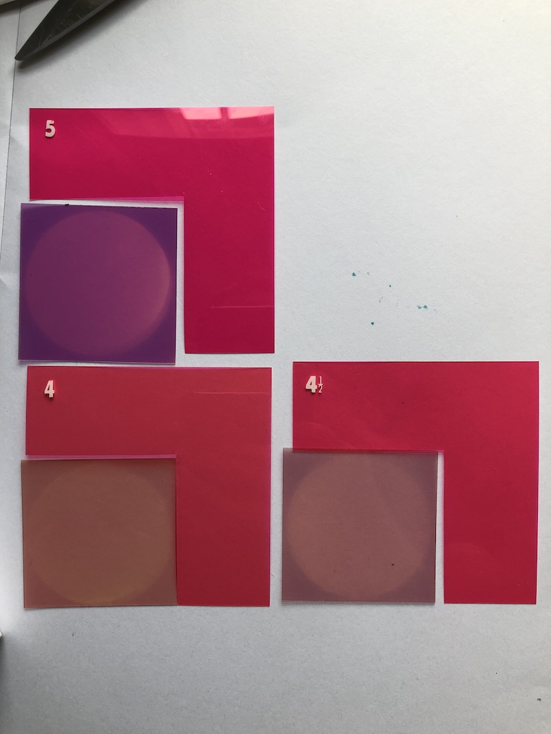 I stumbled on this thread by chance while searching the forum for information on split grading. It made an interesting read as I remembered buying a set of Ilford multigrade filters back in the early 90s’. Around that same time I had the chance to buy a Dichro colour head for my De Vere 203 enlarger, and the box of multigrade filters were put away virtually unused and have stayed safe and warm, hidden away in my darkroom ever since. After reading this thread regarding issues with the filters fading I thought I would find my box and check them. I’ve attached a picture that clearly shows they have faded quite badly, refuting Ilfords claim that they don’t.