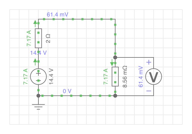 • Internal resistance of the voltage source: 2 ohms (or higher/lower)