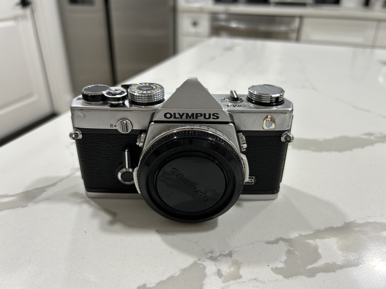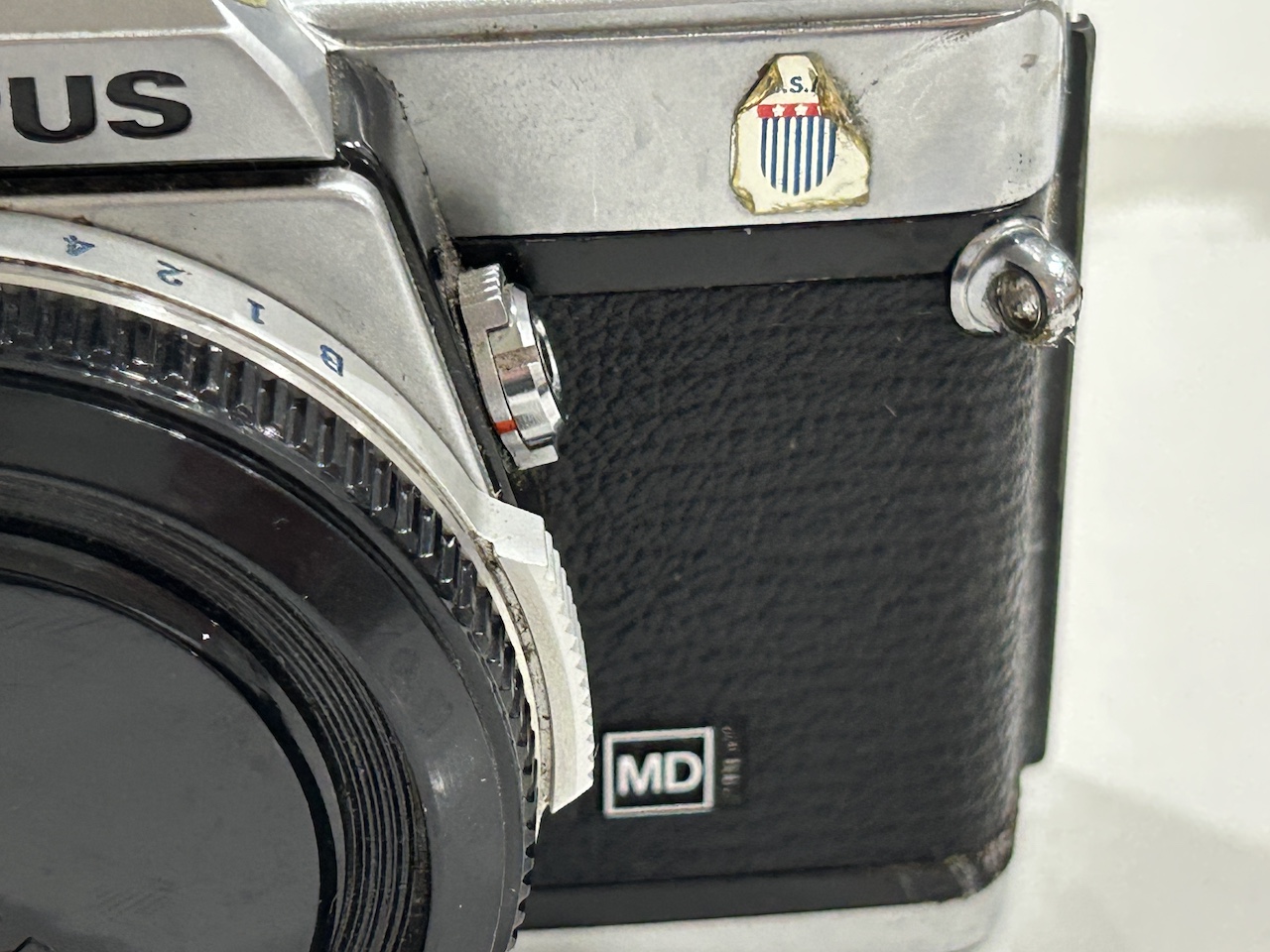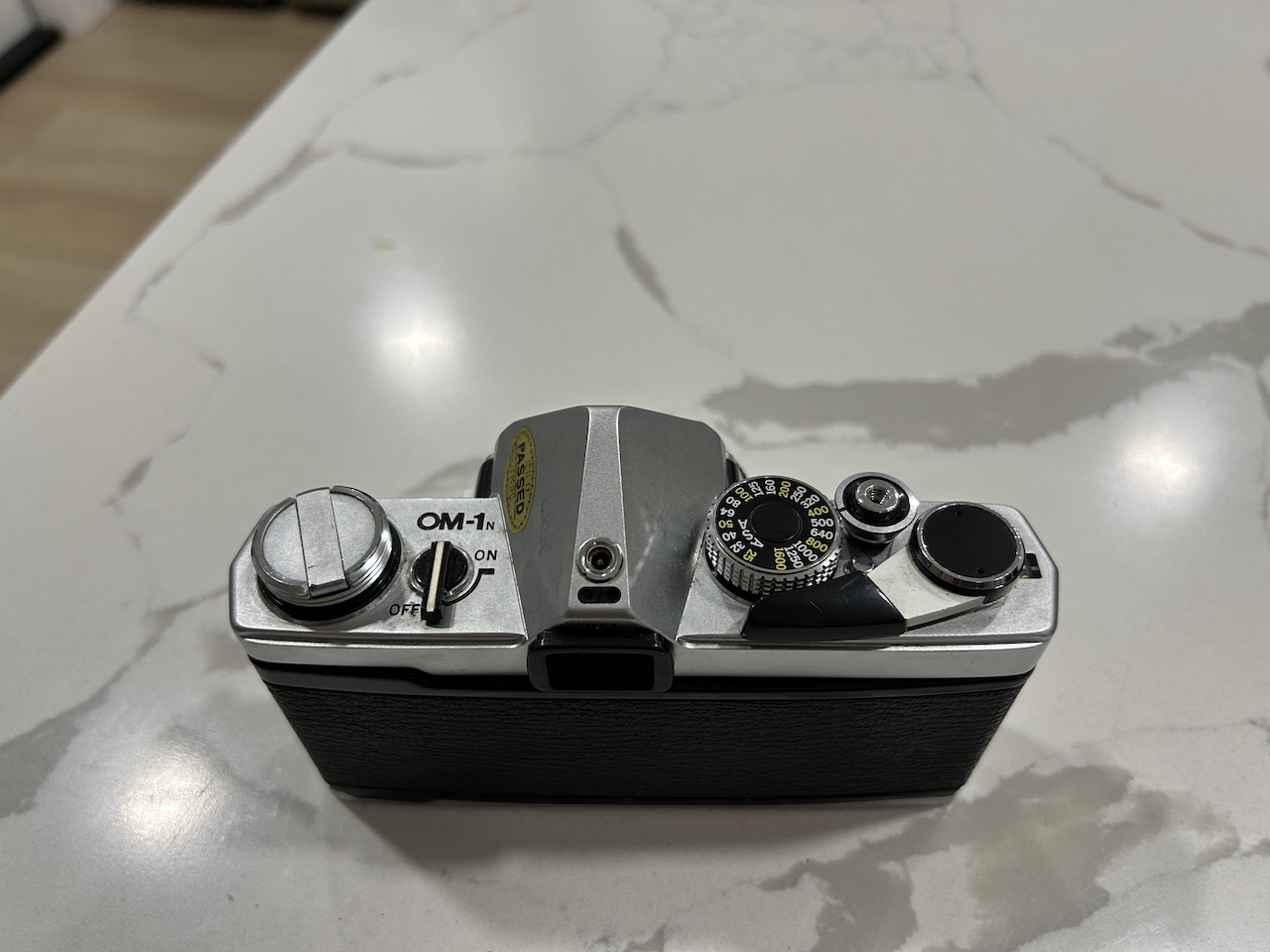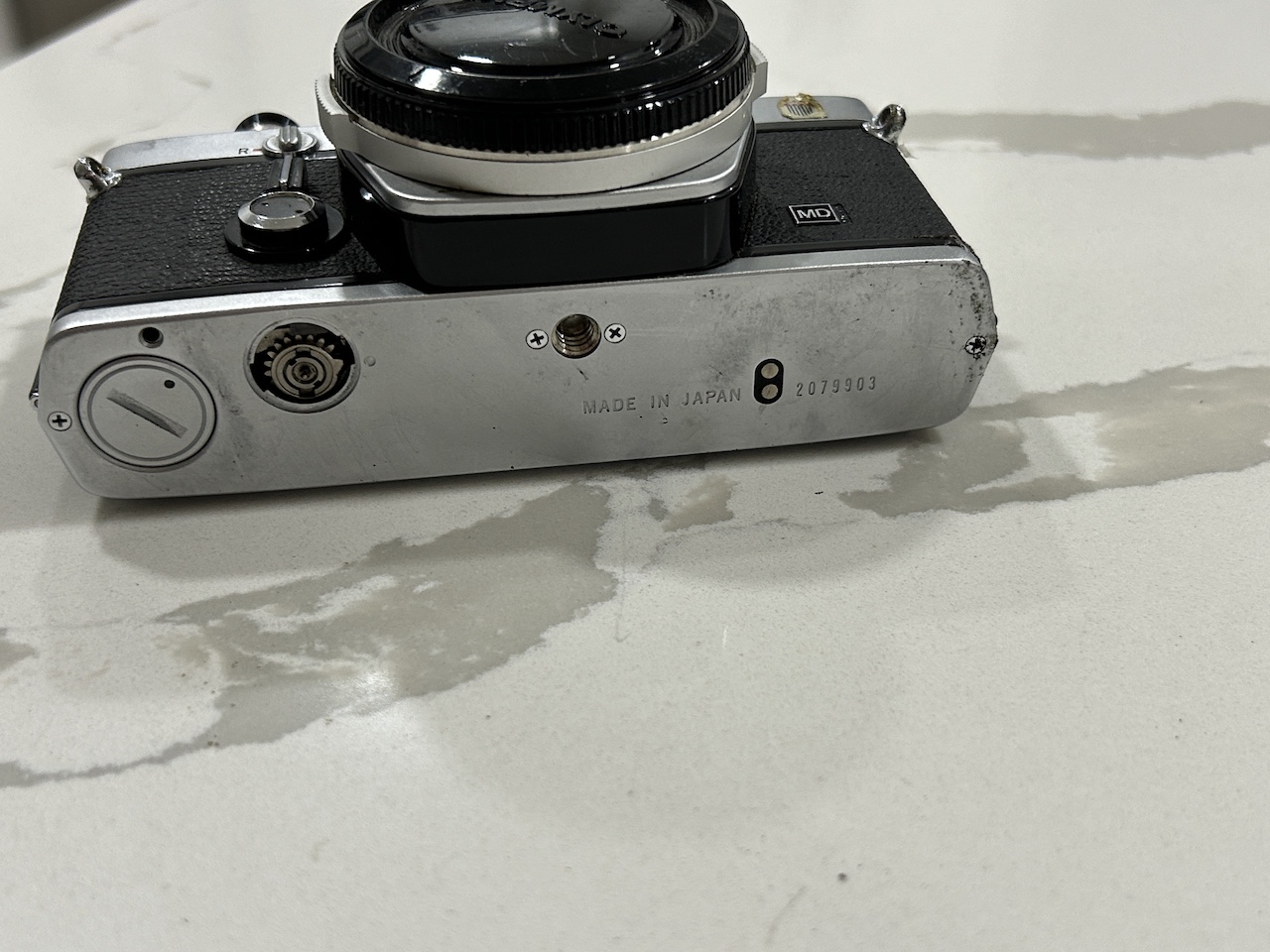I am selling a fully working Olympus OM-1n body. All functions work fine as far as I can tell. The meter responds to light with an alkaline battery installed (not included), but you will need MRB625 or equivalent cell for accurate readings if you plan to use the meter. Cosmetically, the camera is has seen some use through the years, but the condition is still fairly good with no evidence of abuse. The baseplate is missing the motor drive cover, so I recommend covering that with a small piece of tape or keeping the camera in an eveready case to keep dust out. An original Olympus body cap is included.
