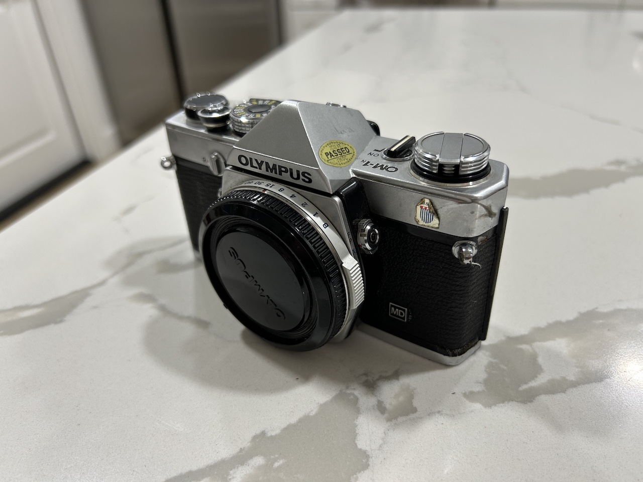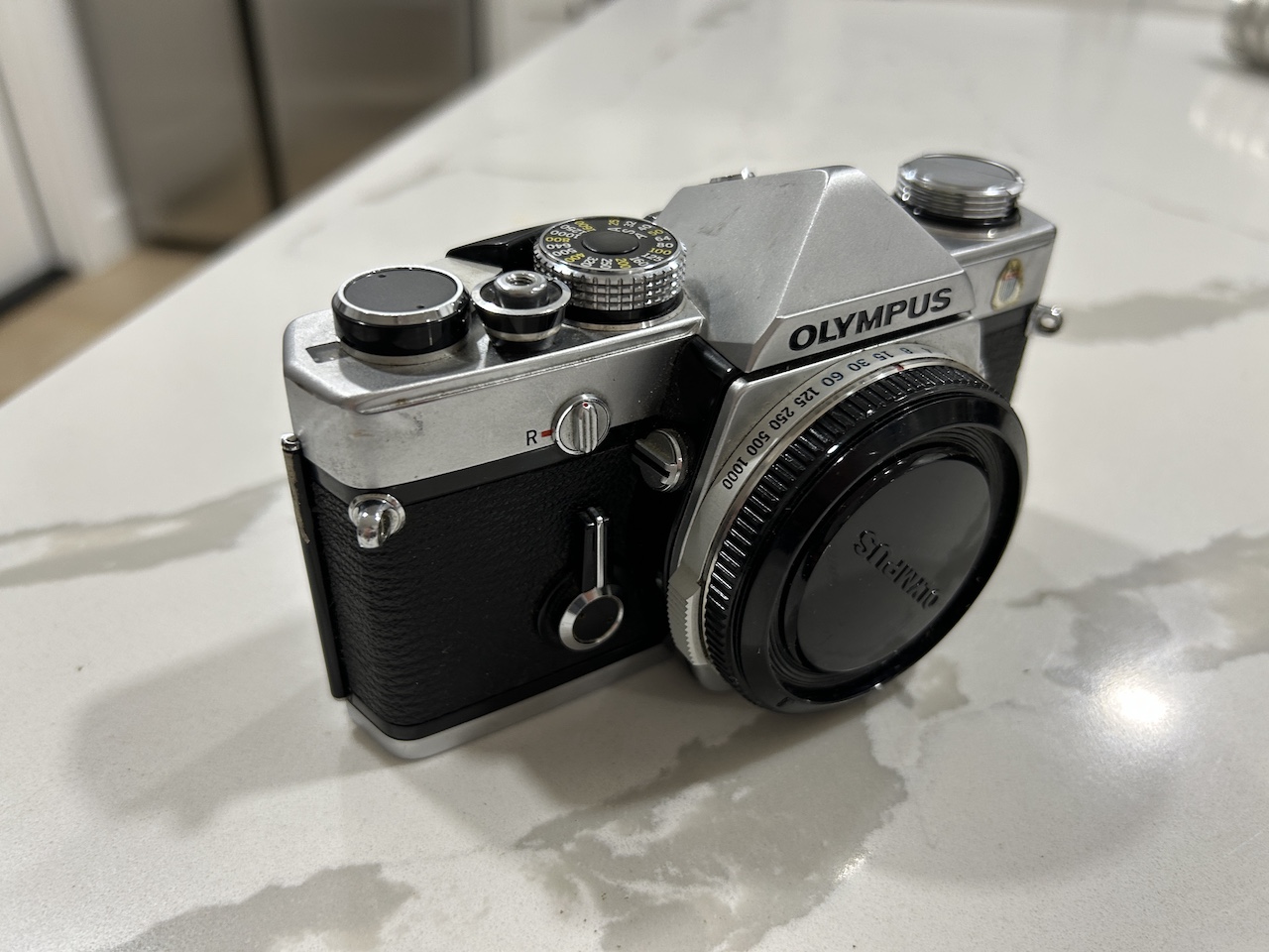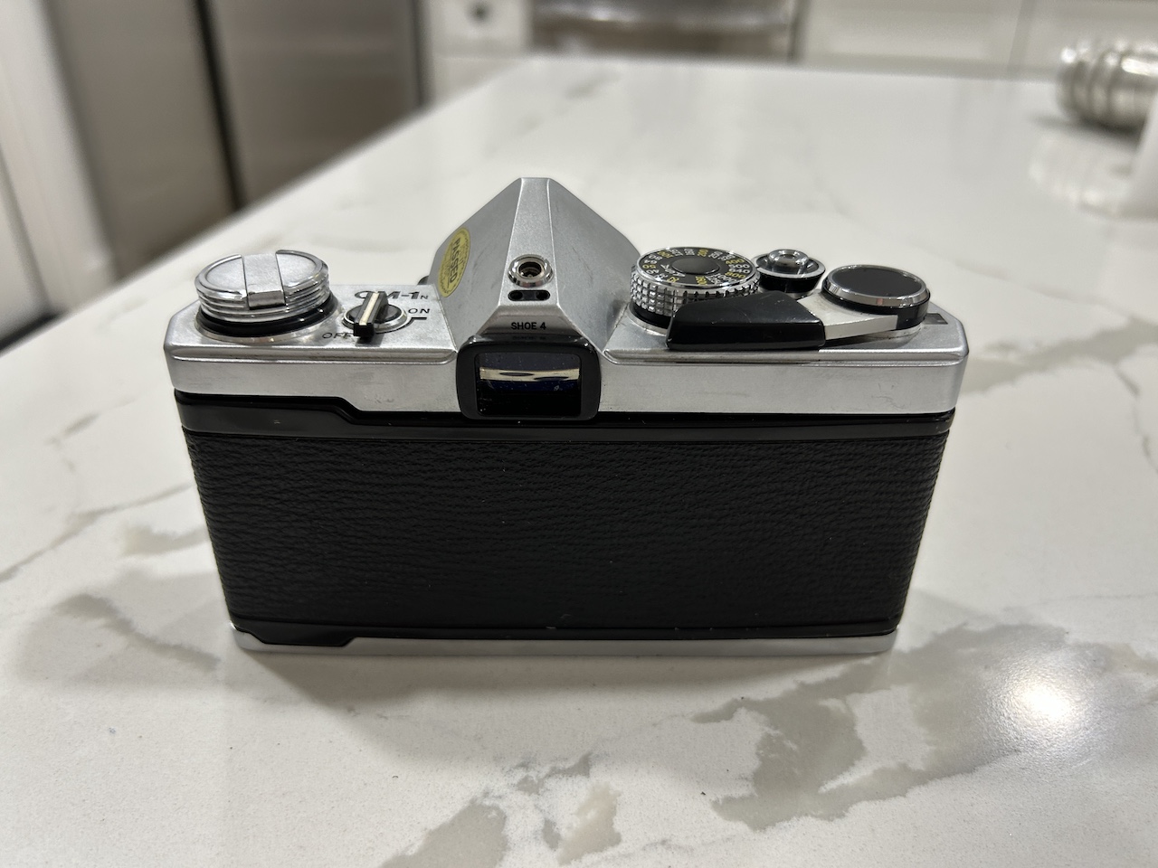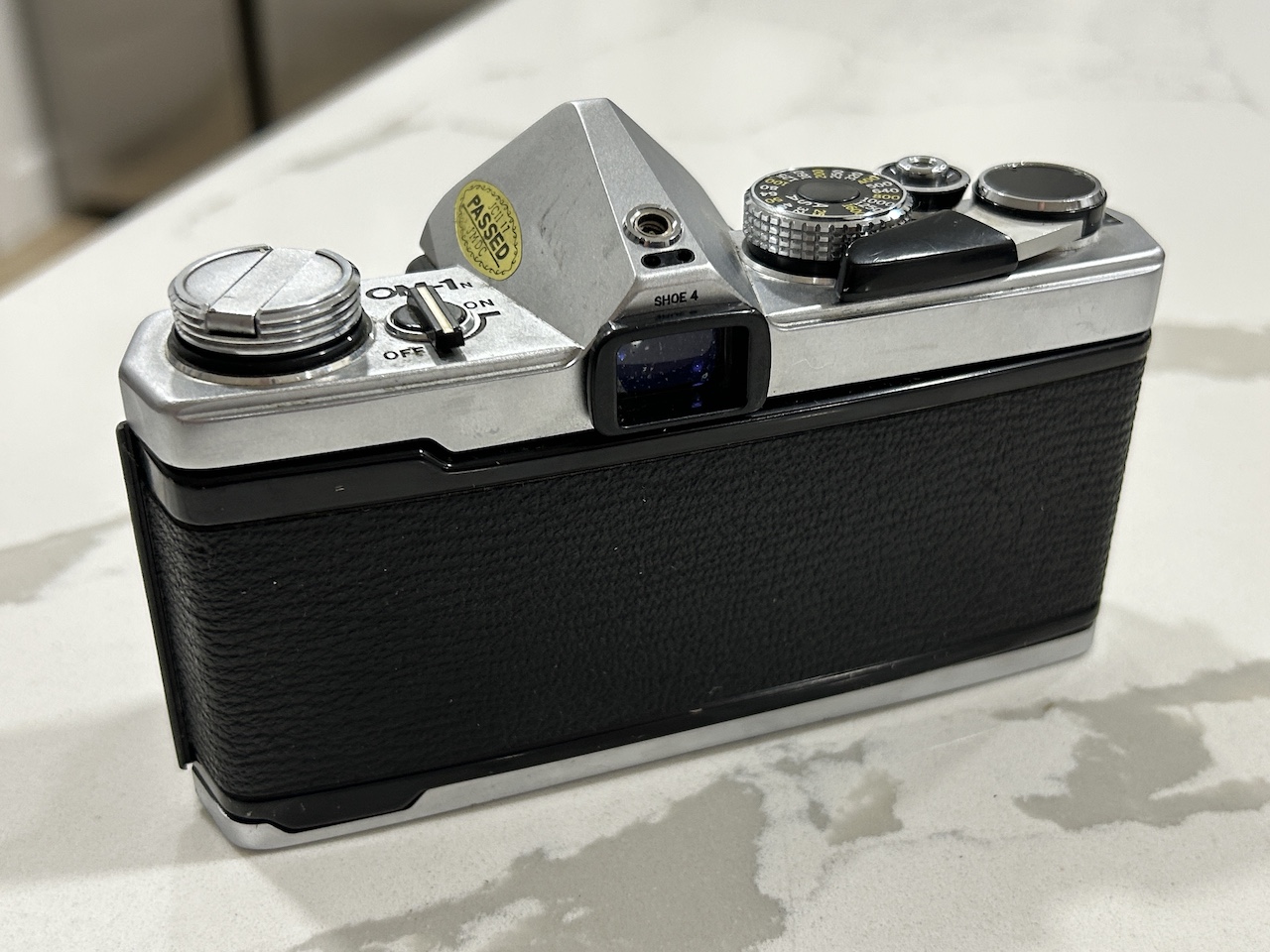 I am selling a fully working Olympus OM-1n body. All functions work fine as far as I can tell. The meter responds to light with an alkaline battery installed (not included), but you will need MRB625 or equivalent cell for accurate readings if you plan to use the meter. Cosmetically, the camera is has seen some use through the years, but the condition is still fairly good with no evidence of abuse. The baseplate is missing the motor drive cover, so I recommend covering that with a small piece of tape or keeping the camera in an eveready case to keep dust out. An original Olympus body cap is included.