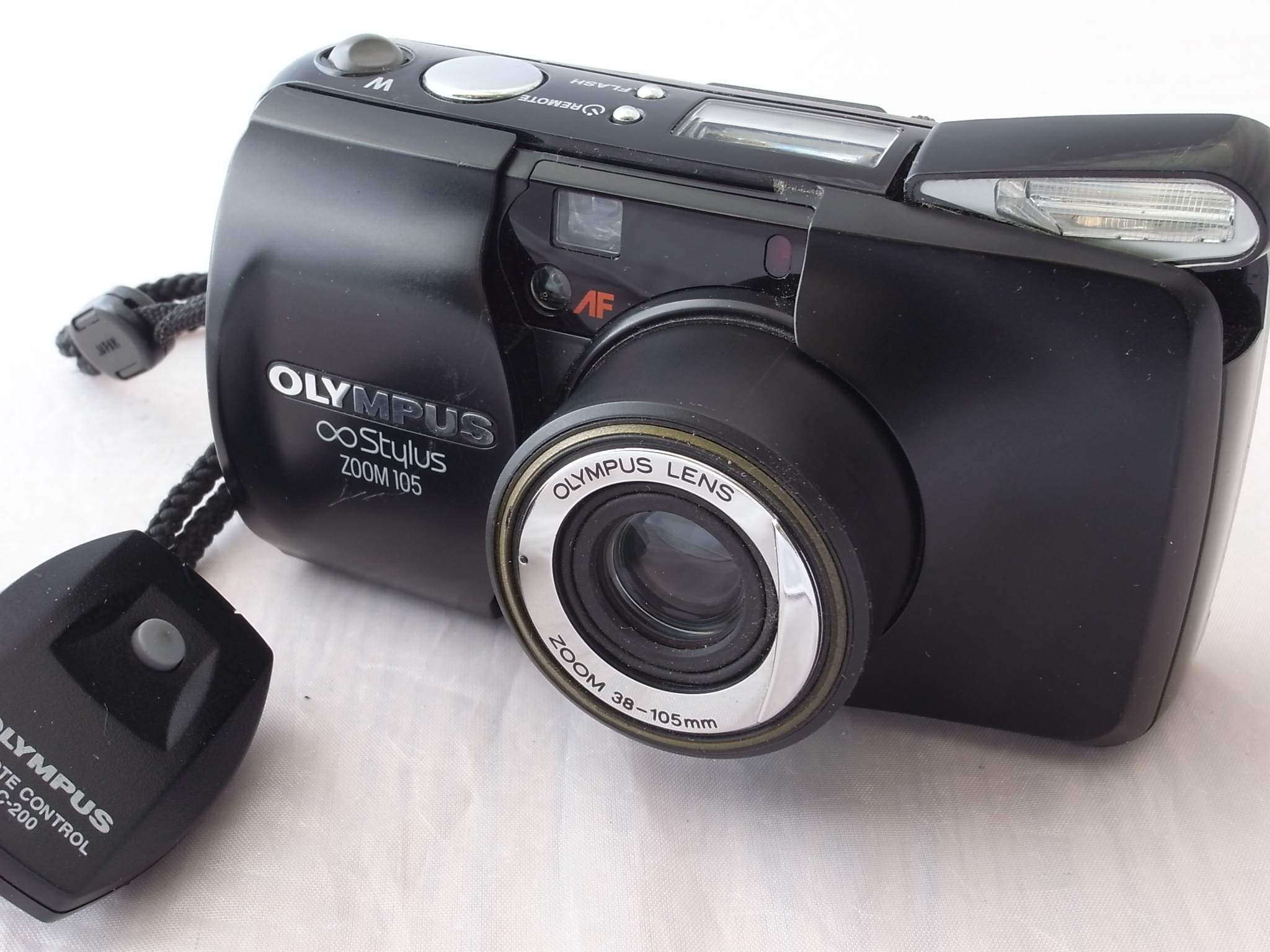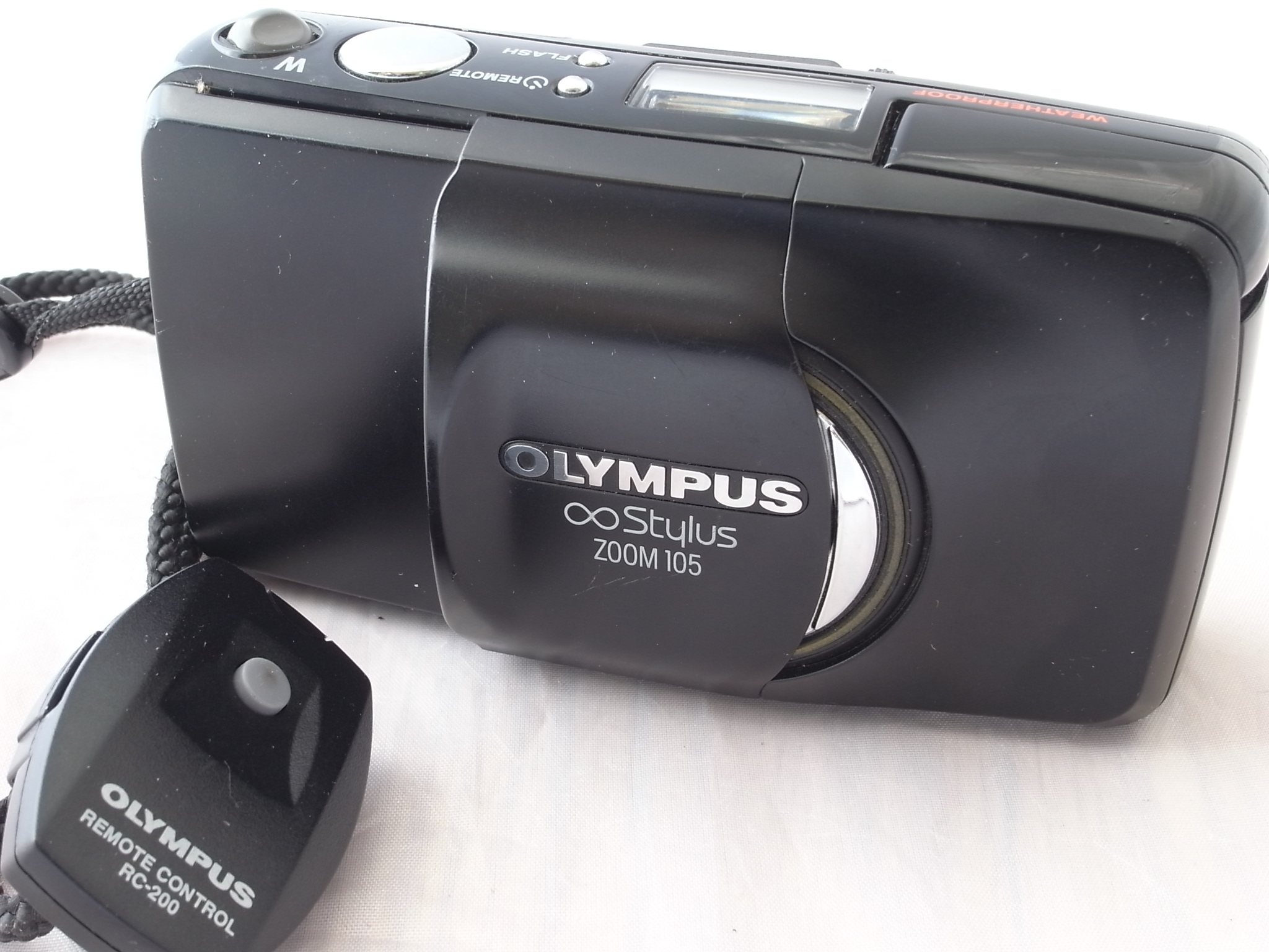 1. Olympus 35 mm film Stylus Zoom 105 camera. Everything works well except for the diopter in the viewfinder, can't see any difference to my eyes. This is "weatherproof" and the seals all seem to be in excellent condition so no problem taking this out in the driving rain if you want. I haven't used it in years but the pics I've seen on flickriver attest to the sharpness of the zoom lens. A nice little camera. You won't find many of these with the remote control for taking pics off-camera (needs a new battery) and unlikely to find one at $40 shipped in the USA, F&F paypal. sold