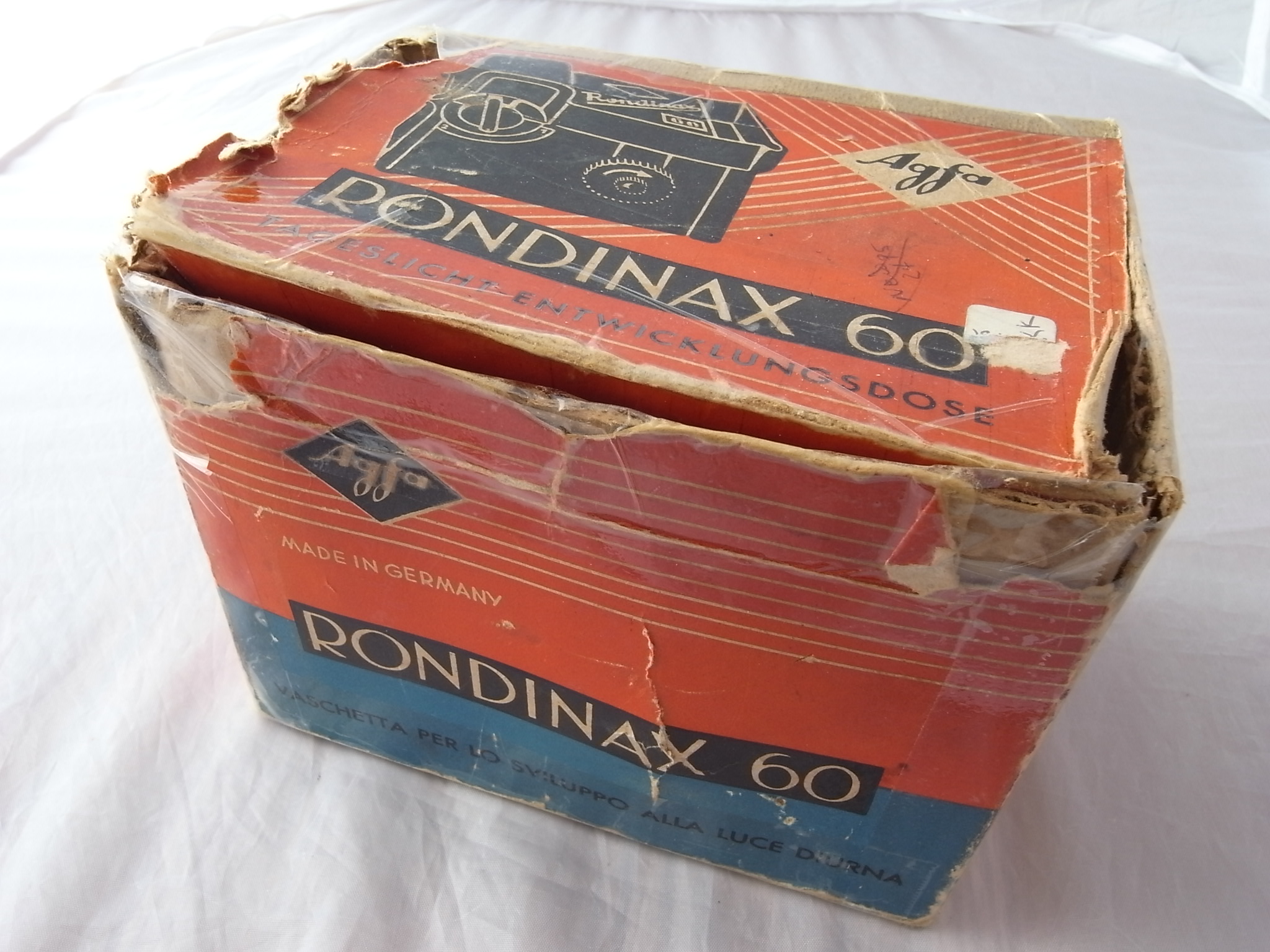 2. Rodinax 60 in box, excellent plus condition. While the box has obviously seen better days, the machine inside is in great condition. Comes with 2 english instructions and one german instruction booklet. This model is for developing 120 film. I don't know if it works with color but it does work with B&W. $90 shipped. F&F