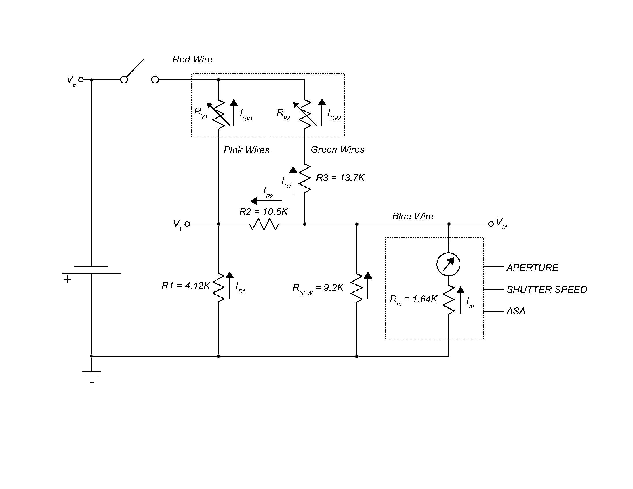 The diagram below is for the original OM-1. The updated OM-1 and OM-1n have different R values, so I wonder whether they also have a different galvenometer with a different R value. If so, the add-in resistor value may need changing.