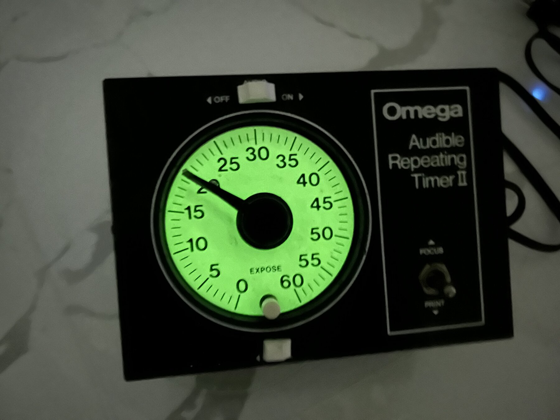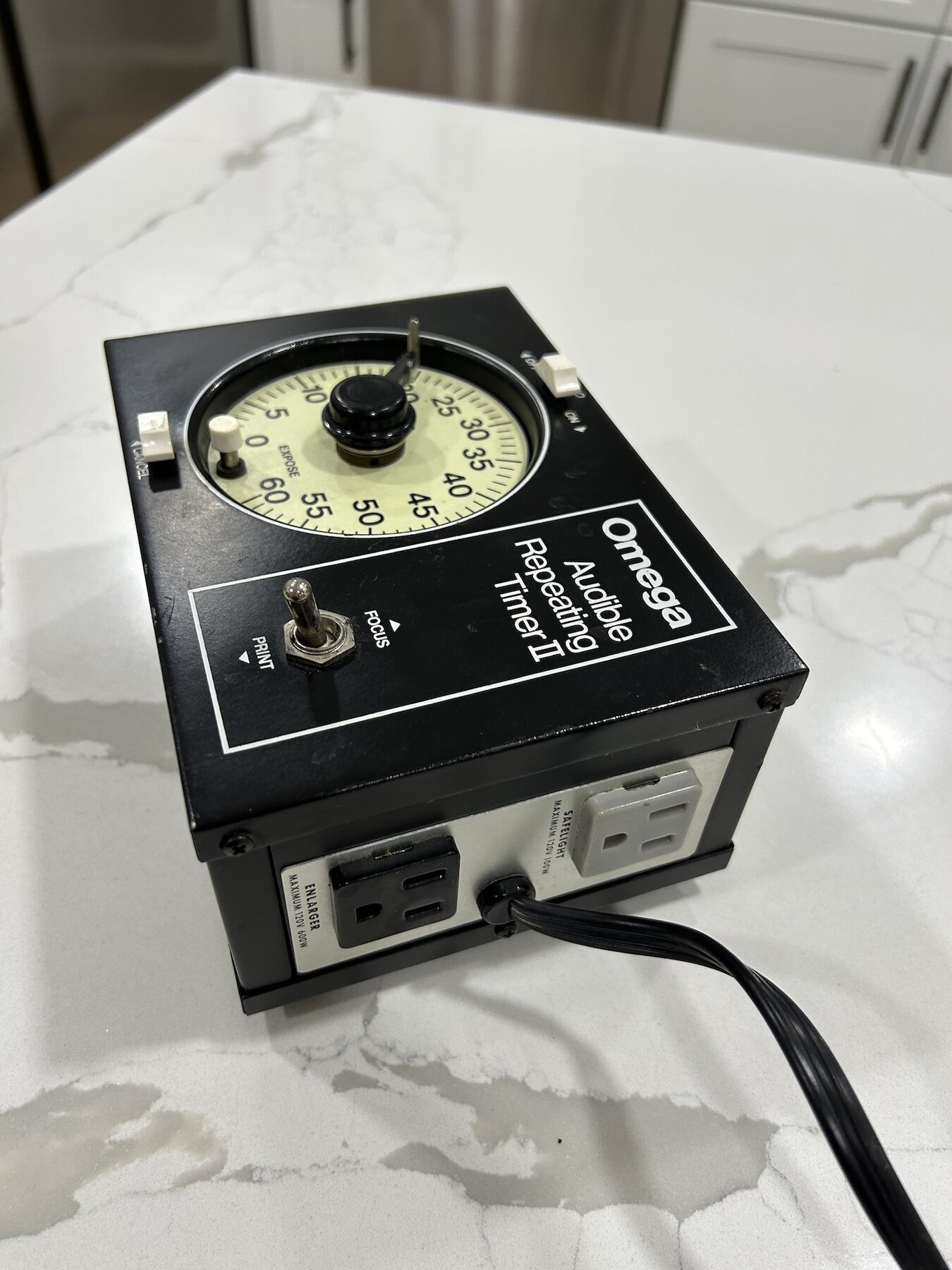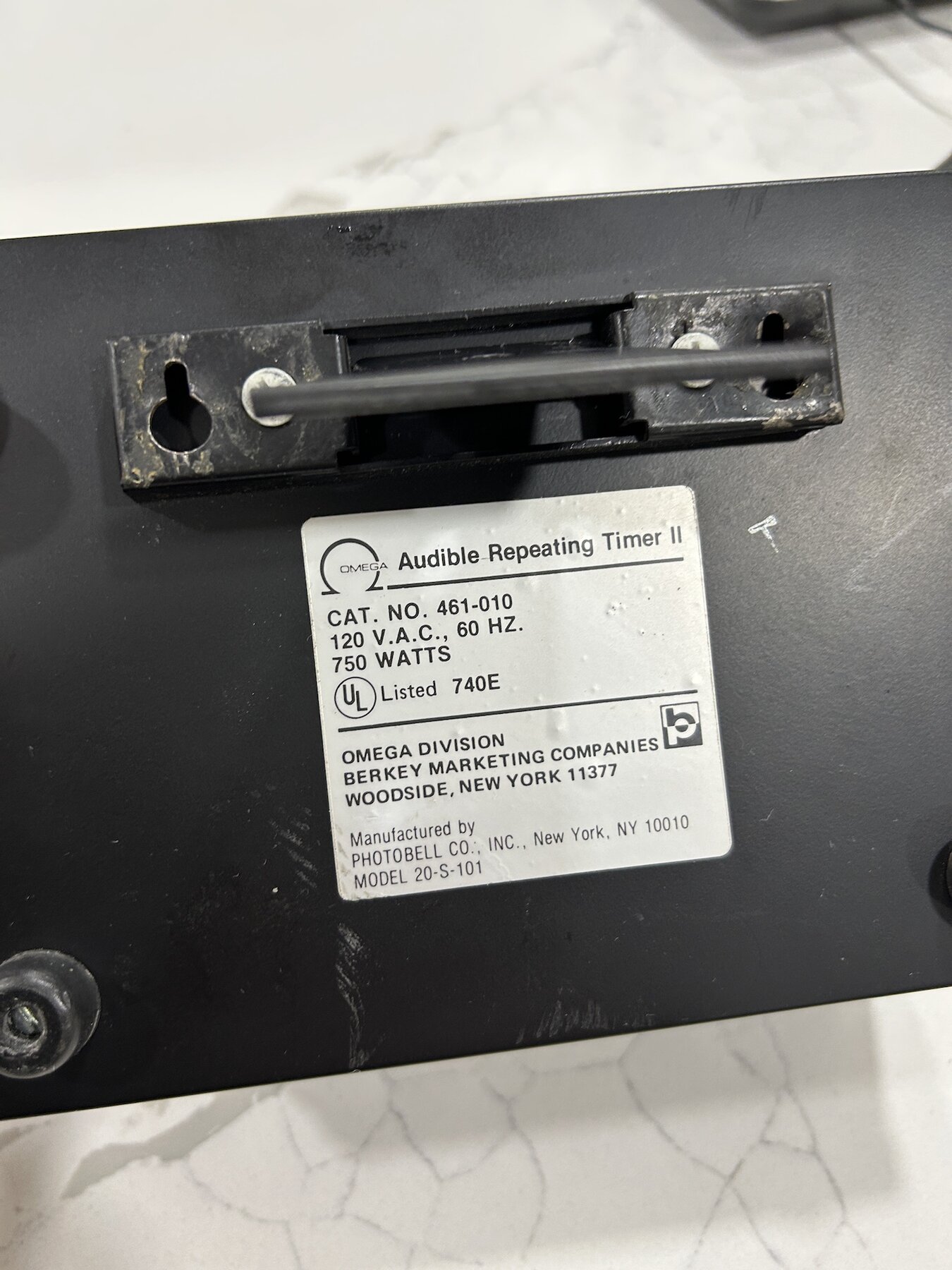I am selling a Omega Audible Repeating Timer II darkroom timer. The timer works fine, although I can't seem to get the little switch that optionally allows one to mute the usual ticking sound it makes as it counts down to stay in the off position if set there. This is a minor flaw and not particularly relevant to its normal use. This timer is a very well-made, high quality item!