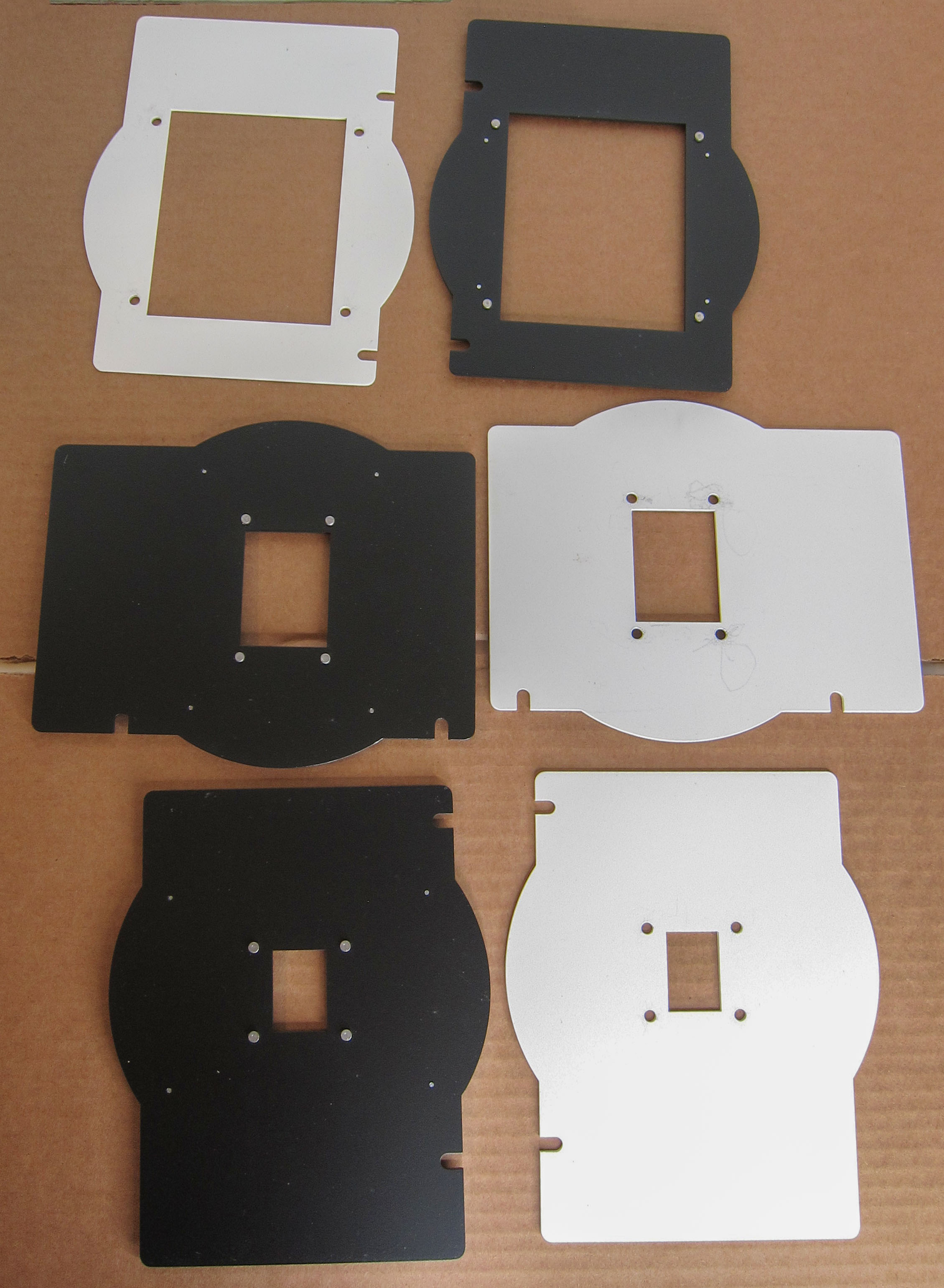 These are all newer and very good shape. White top, black bottoms, glassless. For newer or older Omega D series 4x5 enlargers.