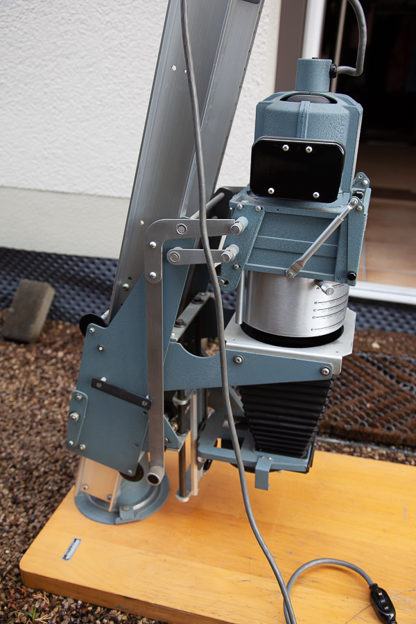 this still very speculative, what is the height above base board of the whole column? I have recently acquired an old Omega D-II, which just about fits in my darkroom cellar which has a 2.00m ceiling. Of course your machine is a much more refined enlarger…