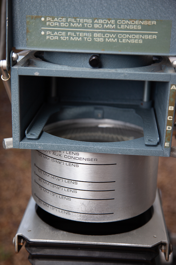 Offering this good condition D-6 enlarger only. This is a brother to the D-5 enlarger so all of the film holders and lens holders will work for both units. The unit is currently wired for 110V but can be converted with a plug and a bulb change. A bit dusty and could use a good CLA, but all movements springs, rods, and bushings are working and the gears/locks are all present. There ARE pinholes in the corners of the bellows but replacements can be purchased or this one repaired. The base board is solid.